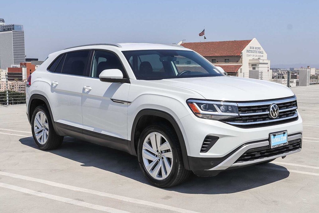 Atlas Cross Sport 2.0T SE w/Technology (A8), Volkswagen Certified Pre-Owned Certified, 4D Sport Utility, 2.0L TSI, 8-Speed Automatic with Tiptronic, AWD, Pure White, Titan Black w/Perforated V-Tex Leatherette Seating Surfaces, 6 Speakers, 8-Way Power Driver and Passenger Seat, Brake assist, Electronic Stability Control, Exterior Parking Camera Rear, Front fog lights, Radio: MIB3 Composition Media w/8 Touchscreen, Remote keyless entry with push button start, and Wheels: 20 x 8J 5-Spoke Silver Painted Alloy