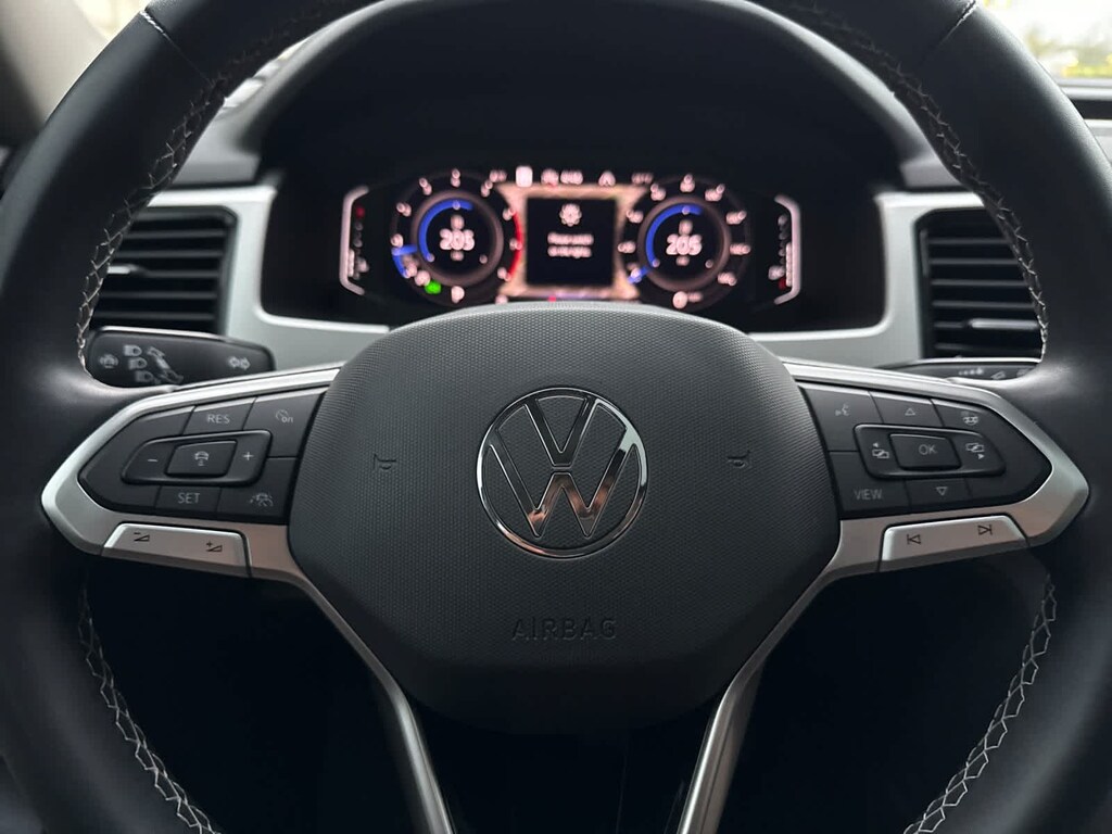 The Atlas has an infotainment system that is easy to use and intuitive, and it allows for swiping and pinch zooming. Apple Car Play is awesome! Surprisingly, some manufacturers have not integrated this feature at this time. The digital instrument panel has a very nice, modern look, and it offers 5 or 6 different views. One of the really cool things about the Atlas- you can display the nav map in the middle of the instrument panel. Additionally, you can make the map bigger and the gauges smaller, which allows you to see more map detail- a really nice option. The car even has an altimeter, which is really cool to me (I’m a pilot by trade). Not so much for my wife…