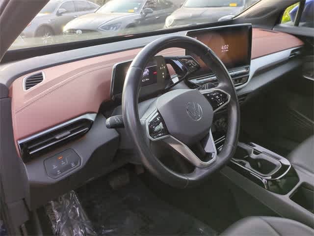Buy our One Owner, No Accidents Reported 2022 Volkswagen ID.4 Pro S in Dusk Blue Metallic and discover how bold an electric SUV can be! Motivated by an Electric Motor that provides 201hp connected to a Single Speed Automatic transmission for a feeling of almost instant acceleration. This Rear Wheel Drive SUV can keep on going, too, with an 82kWh battery pack that supplies an EV range of nearly 275miles and scores nearly 116MPGe in the city. Our ID.4 has distinctive good looks with adaptive LED front lighting, upsized alloy wheels, a hands-free liftgate, a panoramic fixed-glass roof, and illuminated logos.