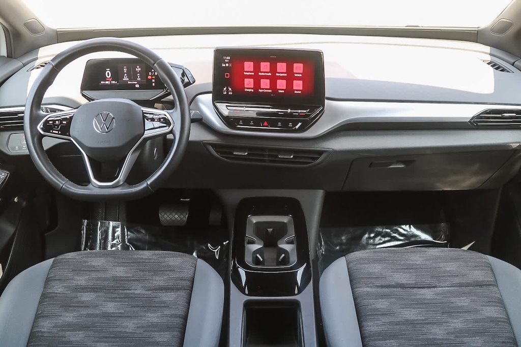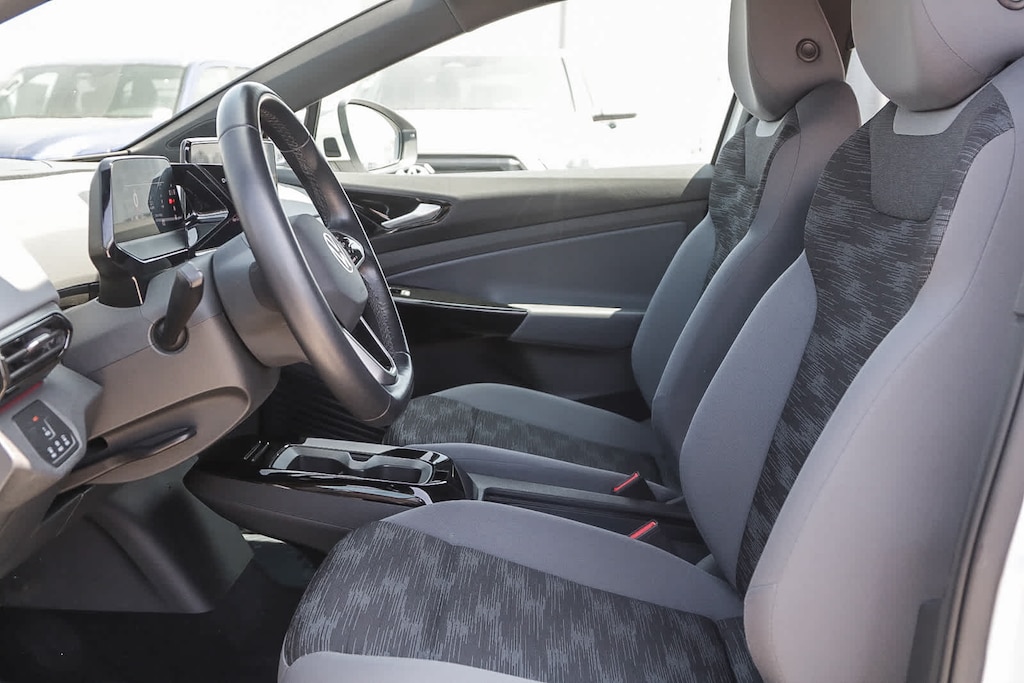ID.4 Pro AWD, 4D Sport Utility, Electric Motor, Single-Speed Automatic, AWD, Glacier White Metallic, Black w/Cloth Seating Surfaces, 7 Speakers, 8-Way Power Driver and Passenger Seat, Brake assist, Electronic Stability Control, Exterior Parking Camera Rear, Front dual zone A/C, Navigation System, Radio: Discover Pro w/10 Touchscreen Navigation, Remote keyless entry with push button start, Traction control, and Wheels: 19 5-Spoke 2-Tone Machined Alloy