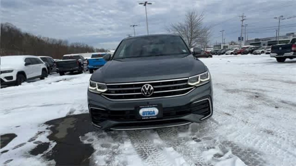Tiguan 2.0T SEL R-Line, 4D Sport Utility, 2.0L TSI DOHC, 8-Speed Automatic with Tiptronic, AWD, Platinum Gray Metallic, Storm Gray Leather, 3.33 Axle Ratio, 4-Wheel Disc Brakes, ABS brakes, Air Conditioning, Alloy wheels, Auto High-beam Headlights, Automatic temperature control, Compass, Delay-off headlights, Dual front impact airbags, Emergency communication system: Car-Net, Front anti-roll bar, Front Bucket Seats, Front Center Armrest, Front dual zone A/C, Front fog lights, Fully automatic headlights, Heated door mirrors, Heated front seats, Leather Shift Knob, Low tire pressure warning, Memory seat, Navigation system: VW Car-Net Guide & Inform, Perforated Vienna Leather Seating Surfaces, Power door mirrors, Power driver seat, Power moonroof, Power passenger seat, Power steering, Power windows, Rain sensing wipers, Rear window defroster, Remote keyless entry, Split folding rear seat, Ventilated front seats, Wheels: 20 Machined Black Alloy.