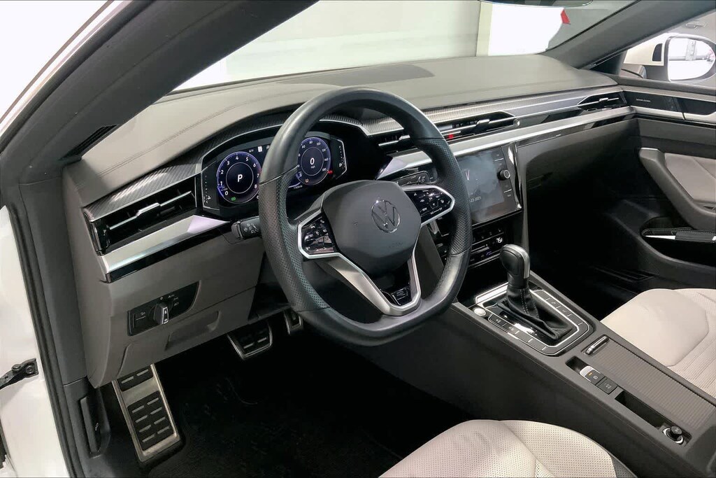 Arteon 2.0T SEL Premium R-Line is nicely equipped with 12 Speakers, 4-Wheel Disc Brakes, ABS brakes, Adaptive suspension, Air Conditioning, Alloy wheels, AM/FM radio: SiriusXM with 360L, Auto High-beam Headlights, Auto-dimming door mirrors, Auto-dimming Rear-View mirror, Automatic temperature control, Brake assist, Bumpers: body-color, Compass, Delay-off headlights, Driver door bin, Driver vanity mirror, Dual front impact airbags, Dual front side impact airbags, Electronic Stability Control, Emergency communication system: VW Car-Net Safe & Secure 5-year, Four wheel independent suspension, Front anti-roll bar, Front Bucket Seats, Front Center Armrest, Front dual zone A/C, Front fog lights, Front reading lights, Fully automatic headlights, harman/kardonî Speakers, Heated door mirrors, Heated Front Comfort Sport Seats, Heated front seats, Heated rear seats, Heated steering wheel, Illuminated entry, Knee airbag, Leather Shift Knob, Leather steering wheel, Low tire pressure warning, Memory seat, Navigation System, Occupant sensing airbag, Outside temperature display, Overhead airbag, Overhead console, Panic alarm, Passenger door bin, Passenger vanity mirror, Perforated Nappa Leather Seating Surfaces, Power door mirrors, Power driver seat, Power Liftgate, Power moonroof, Power passenger seat, Power steering, Power windows, Radio data system, Radio: MIB3 Discover Media Navigation AM/FM/HD, Rain sensing wipers, Rear air conditioning, Rear anti-roll bar, Rear reading lights, Rear seat center armrest, Rear window defroster, Remote keyless entry, Rubber Mats Kit, Security system, Speed control, Speed-sensing steering, Split folding rear seat, Spoiler, Sport steering wheel, Steering wheel mounted audio controls, Tachometer, Telescoping steering wheel, Tilt steering wheel, Traction control, Trip computer, Turn signal indicator mirrors, Variably intermittent wipers, Ventilated front seats, VW Car-Net Safe & Secure 5-Year Plan, and Wheels: 20 x 8.0J 2-Tone Machined Alloy.