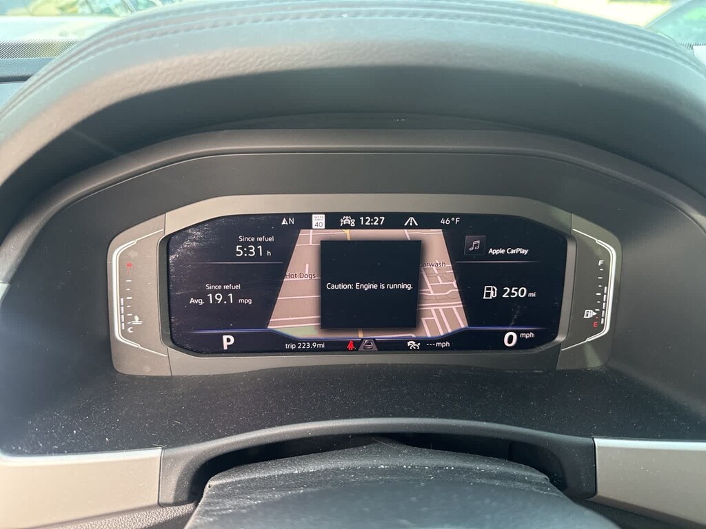 The Atlas has an infotainment system that is easy to use and intuitive, and it allows for swiping and pinch zooming. Apple Car Play is awesome! Surprisingly, some manufacturers have not integrated this feature at this time. The digital instrument panel has a very nice, modern look, and it offers 5 or 6 different views. One of the really cool things about the Atlas- you can display the nav map in the middle of the instrument panel. Additionally, you can make the map bigger and the gauges smaller, which allows you to see more map detail- a really nice option. The car even has an altimeter, which is really cool to me (I’m a pilot by trade). Not so much for my wife…