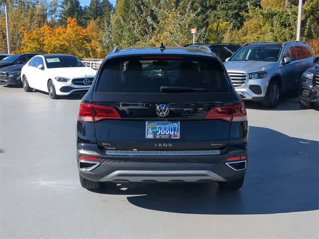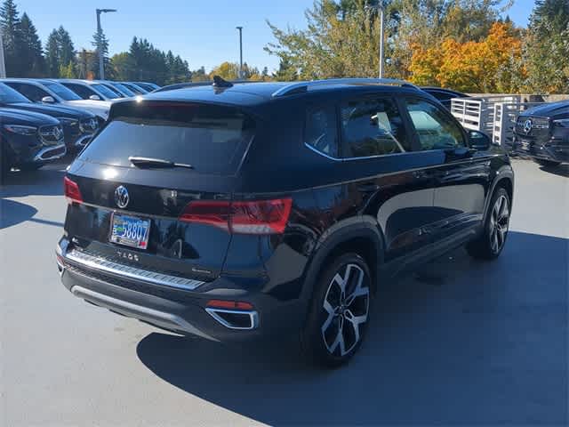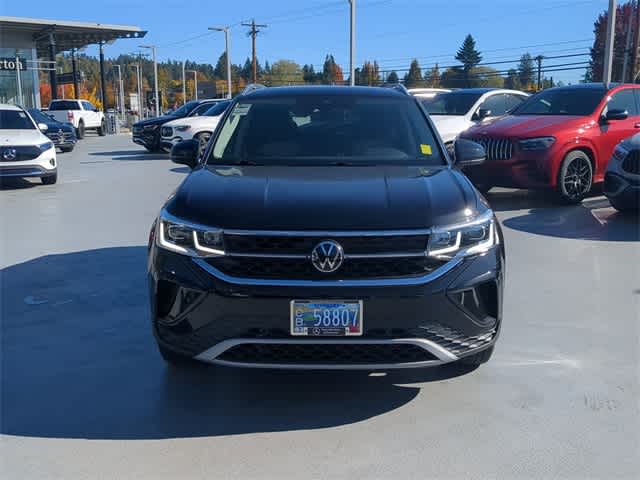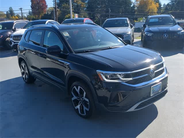 Mercedes-Benz of Beaverton is proud to present this stunning 2023 Volkswagen Taos 1.5T SEL as part of our hand-selected pre-owned lineup. Our trained technicians have completed a thorough multi-point safety and mechanical inspection. This gorgeous example is finished in the Deep Black exterior paint and Gray/Black interior. Other dealer added factory options include: 9 Speakers, Auto-Dimming Rearview Mirror w/HomeLink Connect, Brake assist, Chrome Bumperdillo Protection Plate for Rear Bumper, Exterior Parking Camera Rear, Heated front seats, Heated steering wheel, Navigation system: VW Car-Net Guide & Inform, Perforated Vienna Leather Seating Surfaces, Power driver seat, Power moonroof, Radio: MIB3 Discover Media AM/FM/HD, Rear Parking Sensors, and Ventilated front seats.