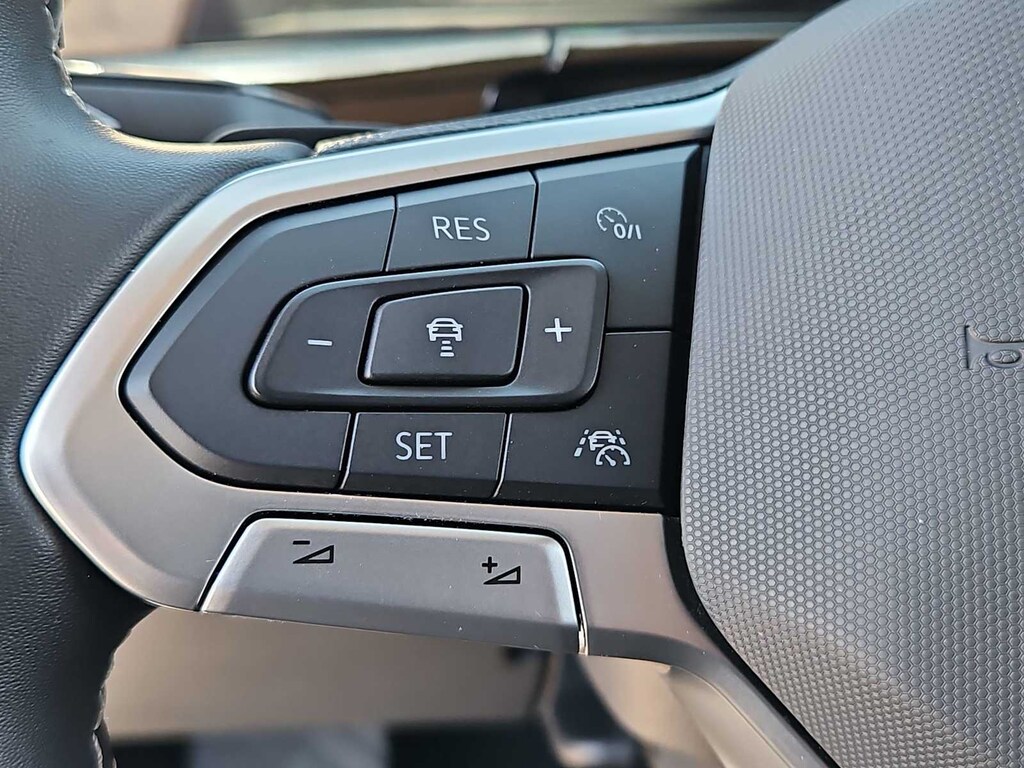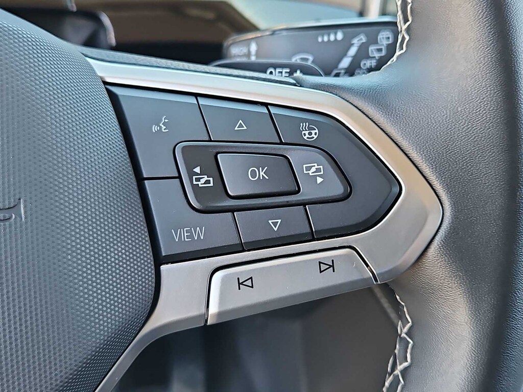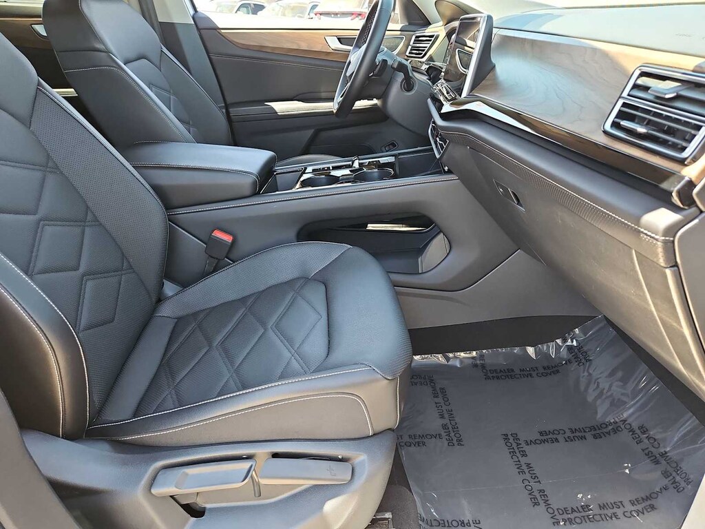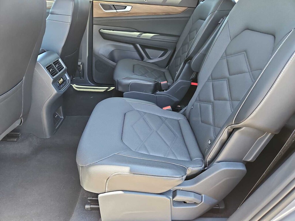 3.60 Axle Ratio, 3rd row seats: split-bench, 4-Wheel Disc Brakes, 6 Speakers, ABS brakes, Air Conditioning, Alloy wheels, AM/FM radio: SiriusXM with 360L, Auto-dimming Rear-View mirror, Automatic temperature control, Brake assist, Bumpers: body-color, Compass, Delay-off headlights, Driver door bin, Driver vanity mirror, Dual front impact airbags, Dual front side impact airbags, Electronic Stability Control, Emergency communication system: VW Car-Net Safe & Secure 5-year, Exterior Parking Camera Rear, Four wheel independent suspension, Front anti-roll bar, Front Bucket Seats, Front Center Armrest, Front dual zone A/C, Front fog lights, Front reading lights, Fully automatic headlights, Heated door mirrors, Heated front seats, Heated steering wheel, Heated/Actively Ventilated Front Bucket Seats, Illuminated entry, Low tire pressure warning, Occupant sensing airbag, Outside temperature display, Overhead airbag, Overhead console, Panic alarm, Passenger door bin, Passenger vanity mirror, Perforated V-Tex Leatherette Seating Surfaces, Power door mirrors, Power driver seat, Power Liftgate, Power steering, Power windows, Radio data system, Radio: MIB3 Composition Media, Rain sensing wipers, Rear air conditioning, Rear anti-roll bar, Rear reading lights, Rear seat center armrest, Rear window defroster, Rear window wiper, Remote keyless entry, Security system, Speed control, Speed-sensing steering, Split folding rear seat, Spoiler, Standard Suspension, Steering wheel mounted audio controls, Tachometer, Telescoping steering wheel, Tilt steering wheel, Traction control, Trip computer, Turn signal indicator mirrors, Variably intermittent wipers, Ventilated front seats, Wheels: 20 2-Tone Machined Alloy.