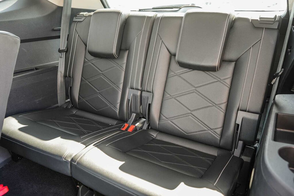 Likes: Third row access is incredibly easy in the Atlas. By pulling up on the release on the top of the seat, the entire seat tips forward, and then slides forward, leaving a large opening to access the rear seat, and allowing us to buckle our 4 year old into that seat very easily, even while standing outside the car. This middle row seat movement can be performed with a car seat installed in the middle row seats, a maneuver that very few 3 row SUVs are capable of. The Infiniti QX-60 has a similar setup, and it is just as easy to use. The Acadia and Traverse also have this option, but during our test drives, we found the mechanism to be incredibly difficult to use. The salesman said it was probably just stiff, but it was almost impossible for my wife to get the seat to move, and it happened in both of those models. Also, the GMC and Chevy only have this capability on the passenger side, which is highly annoying.
