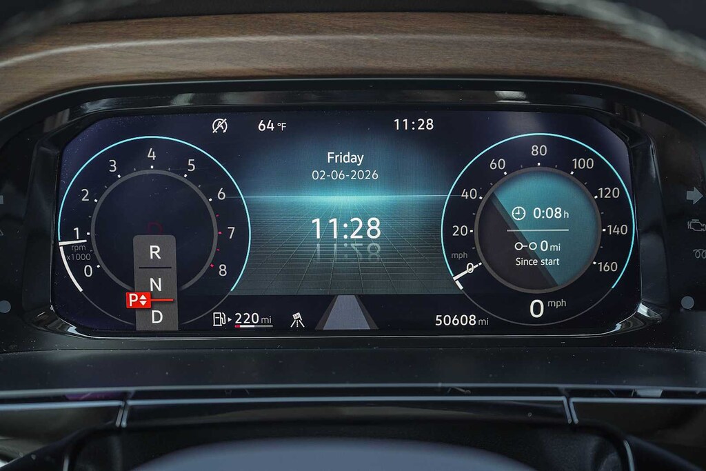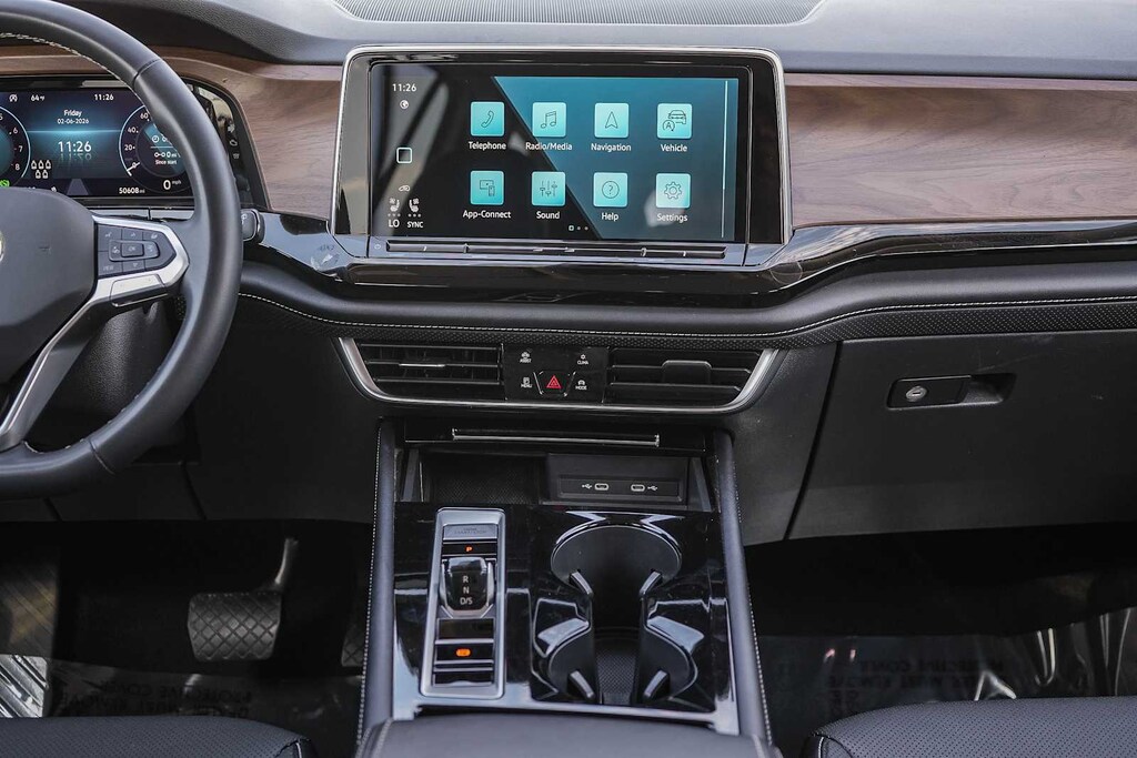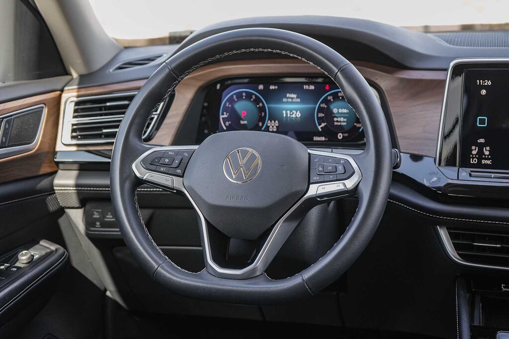 The Atlas has an infotainment system that is easy to use and intuitive, and it allows for swiping and pinch zooming. Apple Car Play is awesome! Surprisingly, some manufacturers have not integrated this feature at this time. The digital instrument panel has a very nice, modern look, and it offers 5 or 6 different views. One of the really cool things about the Atlas- you can display the nav map in the middle of the instrument panel. Additionally, you can make the map bigger and the gauges smaller, which allows you to see more map detail- a really nice option. The car even has an altimeter, which is really cool to me (I’m a pilot by trade). Not so much for my wife…