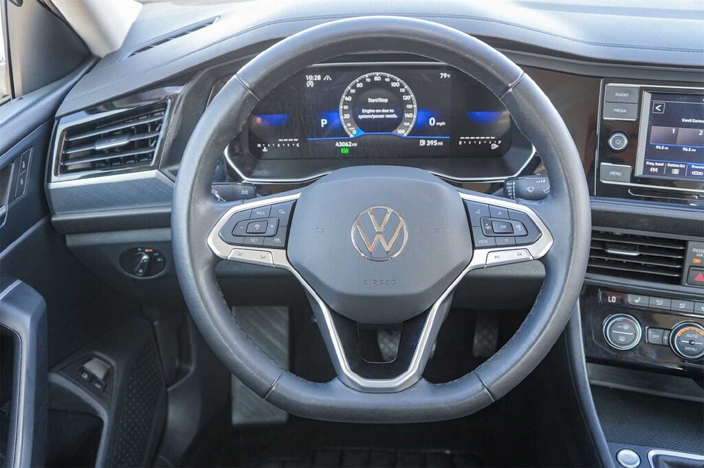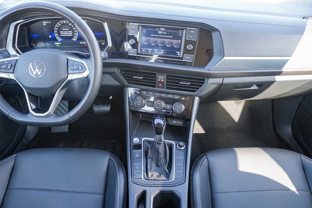 LOCAL TRADE, Jetta 1.5T SE, 4D Sedan, 1.5L I-4 DI DOHC Turbocharged, 8-Speed Automatic with Tiptronic, FWD, Silver, Titan Black w/Vienna Leather Seat Trim, 4 Speakers, Air Conditioning, Automatic temperature control, Front dual zone A/C, Power driver seat, Power steering, Power windows, Radio data system, Radio: MIB3 Composition Color w/6.5 Touchscreen, Rear window defroster, Remote keyless entry, Speed-sensing steering, Steering wheel mounted audio controls, Traction control, 4-Wheel Disc Brakes, ABS brakes, Active Blind Spot Monitor, Alloy wheels, Auto-dimming Rear-View mirror, Brake assist, Bumpers: body-color, Delay-off headlights, Driver door bin, Driver vanity mirror, Dual front impact airbags, Dual front side impact airbags, Electronic Stability Control, Emergency communication system: VW Car-Net Safe & Secure 5-year, Exterior Parking Camera Rear, Front anti-roll bar, Front Bucket Seats, Front Center Armrest, Front wheel independent suspension, Fully automatic headlights, Heated door mirrors, Heated Front Seats, Heated front seats, Illuminated entry, Leather Shift Knob, Leather steering wheel, Low tire pressure warning, Occupant sensing airbag, Outside temperature display, Overhead airbag, Overhead console, Panic alarm, Passenger door bin, Passenger vanity mirror, Power door mirrors, Rain sensing wipers, Rear anti-roll bar, Rear reading lights, Rear seat center armrest, Speed control, Split folding rear seat, Tachometer, Telescoping steering wheel, Tilt steering wheel, Trip computer, V-Tex Leatherette Seat Trim, Variably intermittent wipers, Wheels: 17 Twin 5-Spoke Silver Painted Alloy, Jetta 1.5T SE, 4D Sedan, 1.5L I-4 DI DOHC Turbocharged, 8-Speed Automatic with Tiptronic, FWD, Silver, Titan Black w/Vienna Leather Seat Trim, 4 Speakers, Air Conditioning, Automatic temperature control, Front dual zone A/C, Power driver seat, Power steering, Power windows, Radio data system, Radio: MIB3 Composition Color w/6.5 Touchscreen, Rear window defroster, Remote keyless entry, Speed-sensing steering, Steering wheel mounted audio controls, Traction control.