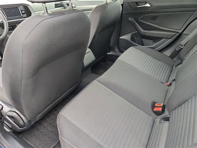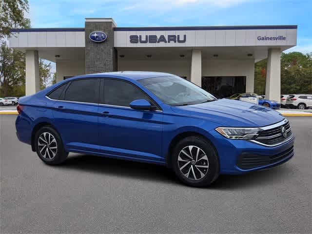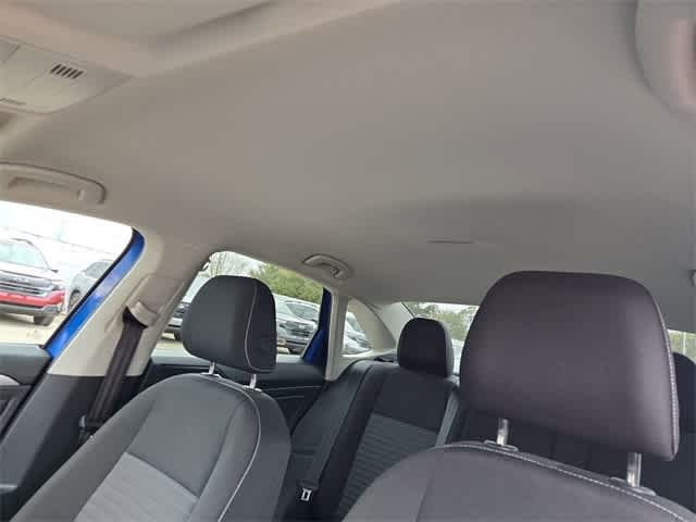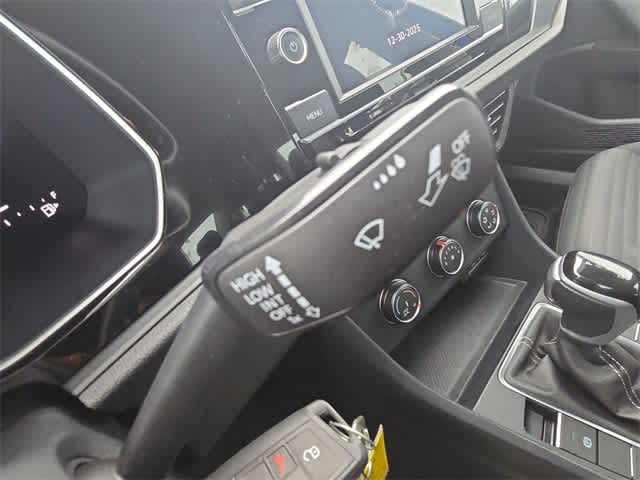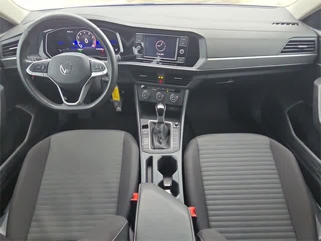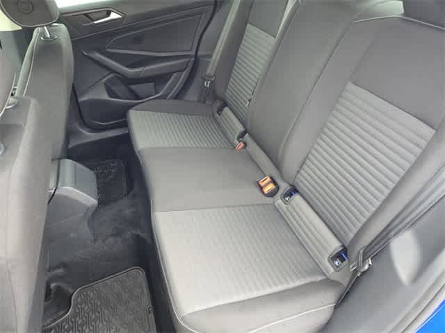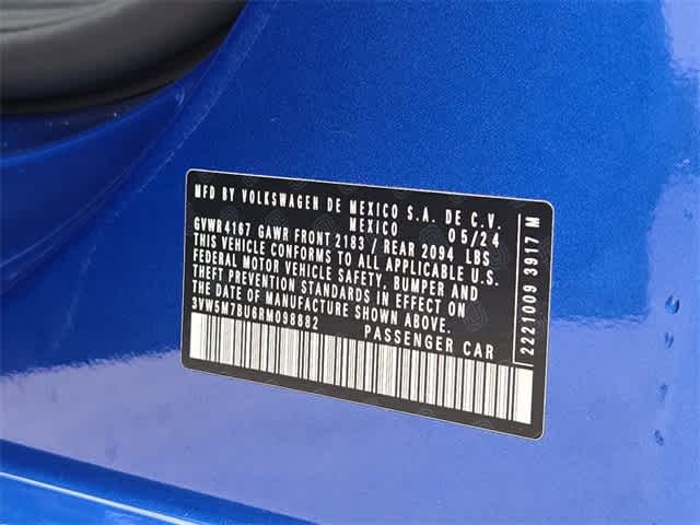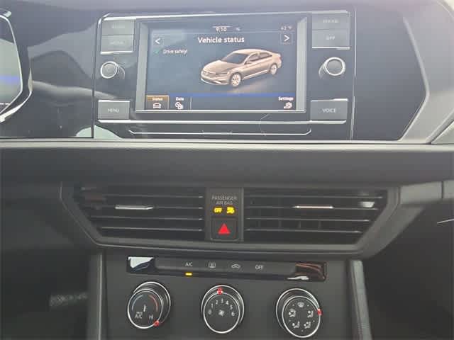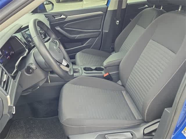 This 2024 Volkswagen Jetta 1.5T S in Rising Blue Metallic, features 4 Speakers, 4-Wheel Disc Brakes, ABS brakes, Active Blind Spot Monitor, Air Conditioning, Alloy wheels, Auto-dimming Rear-View mirror, Brake assist, Bumpers: body-color, Cloth Seat Trim, Delay-off headlights, Driver door bin, Driver vanity mirror, Dual front impact airbags, Dual front side impact airbags, Electronic Stability Control, Emergency communication system: VW Car-Net Safe & Secure 5-year, Exterior Parking Camera Rear, Front anti-roll bar, Front Bucket Seats, Front Center Armrest, Front Seats, Front wheel independent suspension, Fully automatic headlights, Heated door mirrors, Illuminated entry, Leather Shift Knob, Leather steering wheel, Low tire pressure warning, Occupant sensing airbag, Outside temperature display, Overhead airbag, Overhead console, Panic alarm, Passenger door bin, Passenger vanity mirror, Power door mirrors, Power steering, Power windows, Radio data system, Radio: MIB3 Composition Color w/6.5 Touchscreen, Rain sensing wipers, Rear anti-roll bar, Rear reading lights, Rear window defroster, Remote keyless entry, Speed control, Speed-sensing steering, Split folding rear seat, Steering wheel mounted audio controls, Tachometer, Telescoping steering wheel, Tilt steering wheel, Traction control, Trip computer, Variably intermittent wipers, and Wheels: 16 2-Tone Machined Alloy: BLUETOOTH HANDS FREE, BACK-UP CAMERA, POWER PACKAGE, ALLOY WHEELS, ONE OWNER NEVER A RENTAL, CLEAN VEHICLE HISTORY.