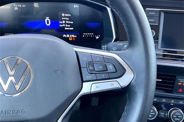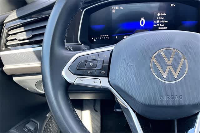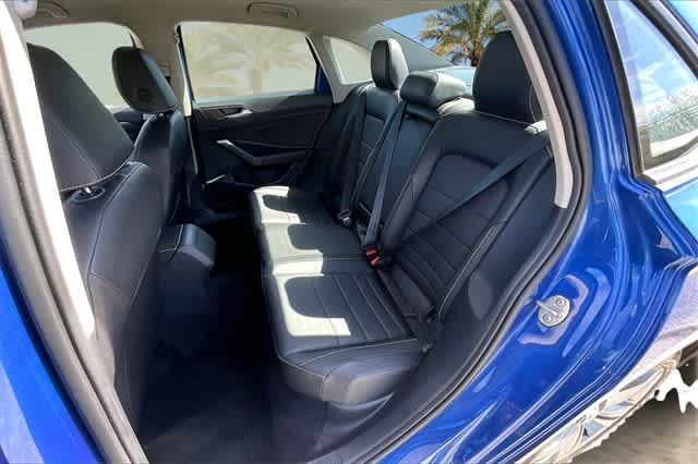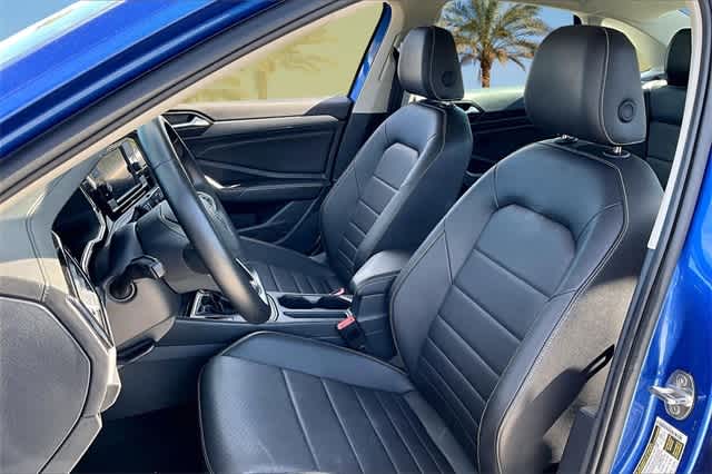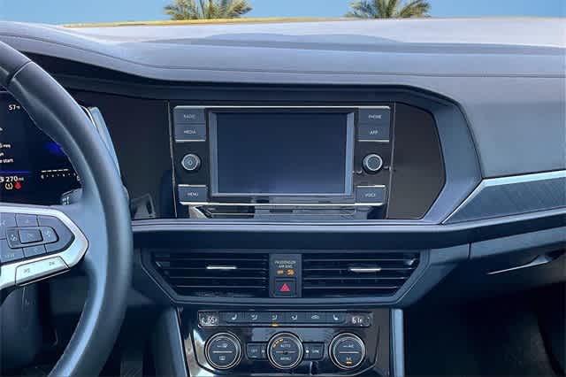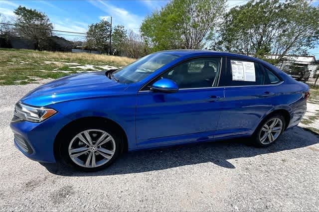 FRESH OIL CHANGE, Blk/Black Artificial Leather, 4 Speakers, 4-Wheel Disc Brakes, ABS brakes, Active Blind Spot Monitor, Air Conditioning, Alloy wheels, Auto-dimming Rear-View mirror, Automatic temperature control, Brake assist, Bumpers: body-color, Delay-off headlights, Driver door bin, Driver vanity mirror, Dual front impact airbags, Dual front side impact airbags, Electronic Stability Control, Emergency communication system: VW Car-Net Safe & Secure 5-year, Exterior Parking Camera Rear, Front anti-roll bar, Front Bucket Seats, Front Center Armrest, Front dual zone A/C, Front wheel independent suspension, Fully automatic headlights, Heated door mirrors, Heated Front Seats, Heated front seats, Illuminated entry, Leather Shift Knob, Leather steering wheel, Low tire pressure warning, Occupant sensing airbag, Outside temperature display, Overhead airbag, Overhead console, Panic alarm, Passenger door bin, Passenger vanity mirror, Power door mirrors, Power driver seat, Power steering, Power windows, Radio data system, Radio: MIB3 Composition Color w/6.5 Touchscreen, Rain sensing wipers, Rear anti-roll bar, Rear reading lights, Rear seat center armrest, Rear window defroster, Remote keyless entry, Speed control, Speed-sensing steering, Split folding rear seat, Steering wheel mounted audio controls, Tachometer, Telescoping steering wheel, Tilt steering wheel, Traction control, Trip computer, V-Tex Leatherette Seat Trim, Variably intermittent wipers, Wheels: 17 Twin 5-Spoke Silver Painted Alloy, Blk/Black Artificial Leather. Odometer is 1651 miles below market average! 29/40 City/Highway MPG Blue 2024 Volkswagen Jetta 1.5T SE FWD 8-Speed Automatic with Tiptronic 1.5L I-4 DI DOHC Turbocharged