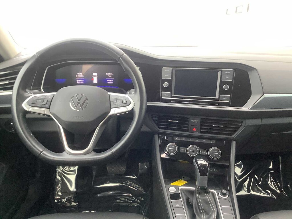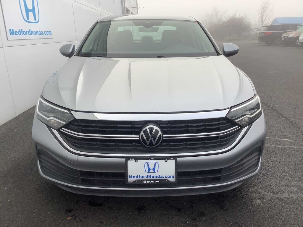 Silver 2024 Volkswagen Jetta 1.5T SE FWD 8-Speed Automatic with Tiptronic Titan Black Artificial Leather.