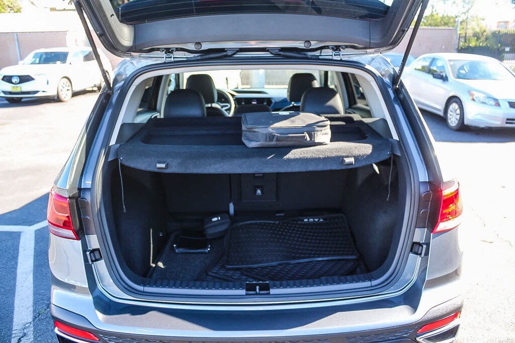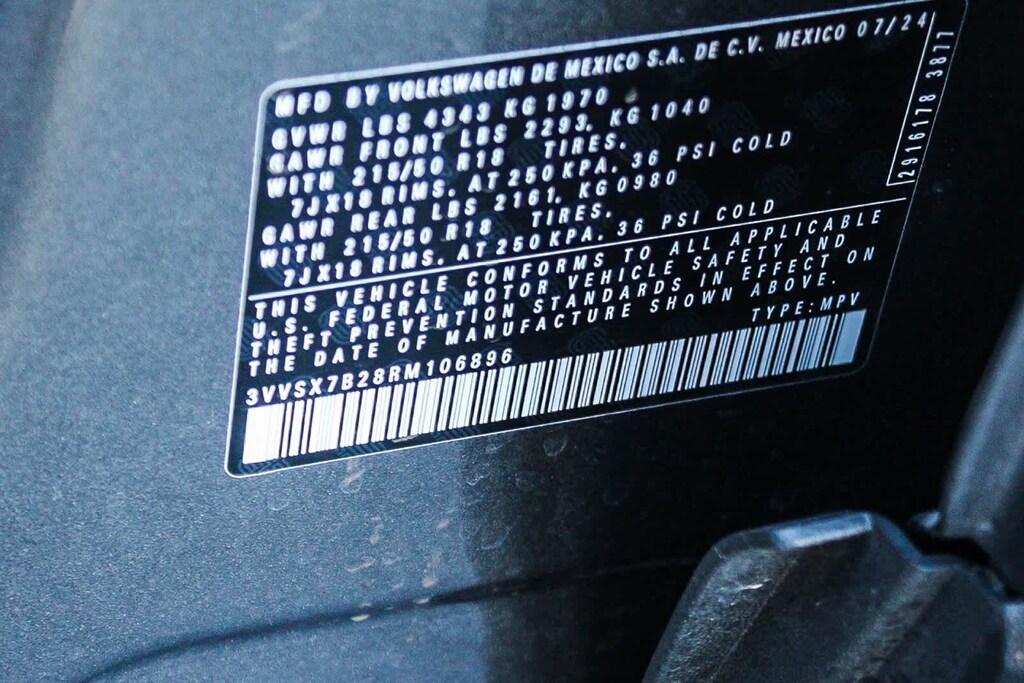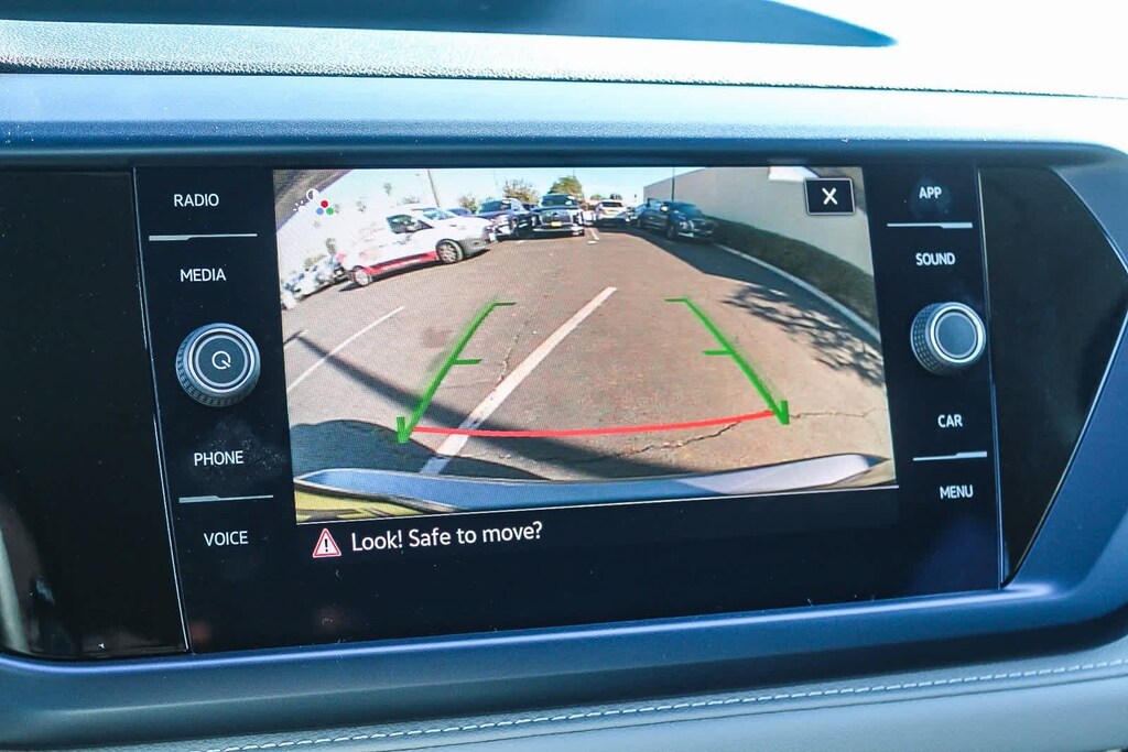 3.23 Axle Ratio, 4-Wheel Disc Brakes, 6 Speakers, ABS brakes, Active Blind Spot Monitor, Air Conditioning, Alloy wheels, AM/FM radio: SiriusXM with 360L, Auto High-beam Headlights, Automatic temperature control, Brake assist, Bumpers: body-color, Cargo Area Retractable Privacy Cover, CloudTex & Cloth Seating Surfaces, Compass, Delay-off headlights, Driver door bin, Driver vanity mirror, Dual front impact airbags, Dual front side impact airbags, Electronic Stability Control, Emergency communication system: VW Car-Net Safe & Secure 5-year, Exterior Parking Camera Rear, First Aid Kit, Front anti-roll bar, Front Bucket Seats, Front Center Armrest, Front dual zone A/C, Front reading lights, Front Strut Rear Torsion Beam Suspension, Front wheel independent suspension, Fully automatic headlights, Heated door mirrors, Heated Front Bucket Seats, Heated front seats, Heated steering wheel, Illuminated entry, Leather Shift Knob, Low tire pressure warning, Luggage Net, Occupant sensing airbag, Outside temperature display, Overhead airbag, Overhead console, Panic alarm, Passenger door bin, Passenger vanity mirror, Power door mirrors, Power driver seat, Power steering, Power windows, Radio data system, Radio: MIB3 Composition Media AM/FM/HD, Rain sensing wipers, Rear anti-roll bar, Rear seat center armrest, Rear window defroster, Rear window wiper, Remote keyless entry, Roadside Assistance Kit, Roof rack: rails only, Rubber Mats Kit (SNM), Security system, Speed control, Speed-sensing steering, Split folding rear seat, Spoiler, Steering wheel mounted audio controls, Tachometer, Telescoping steering wheel, Tilt steering wheel, Traction control, Trip computer, Variably intermittent wipers, Wheels: 18 2-Tone Machined Alloy.