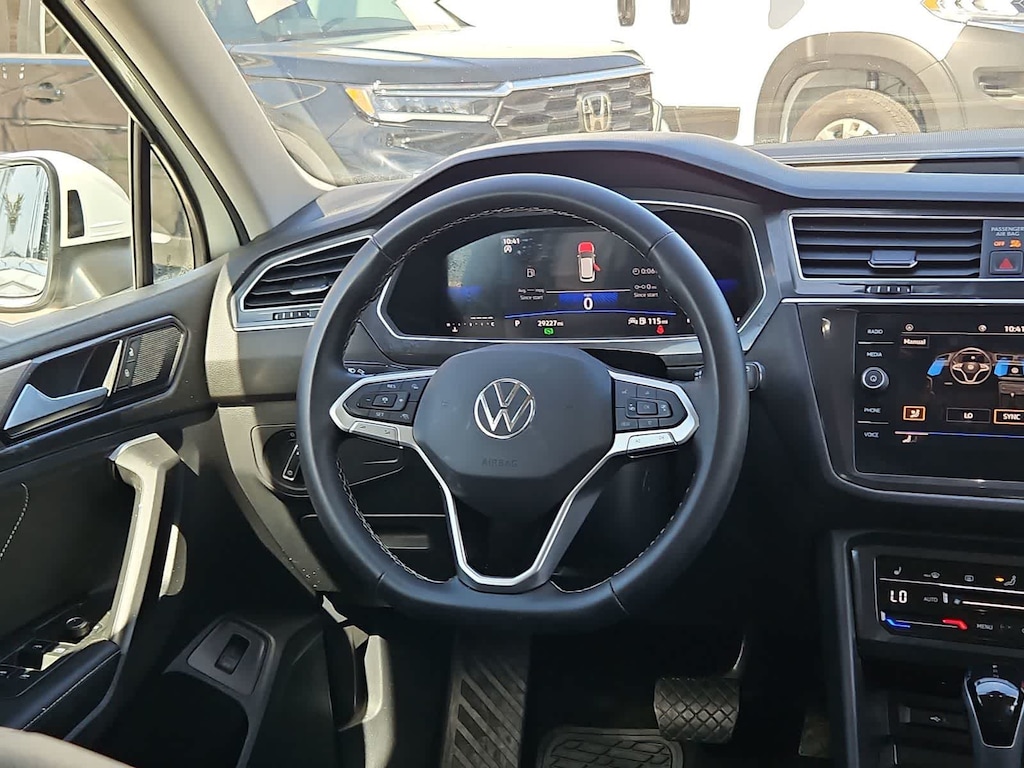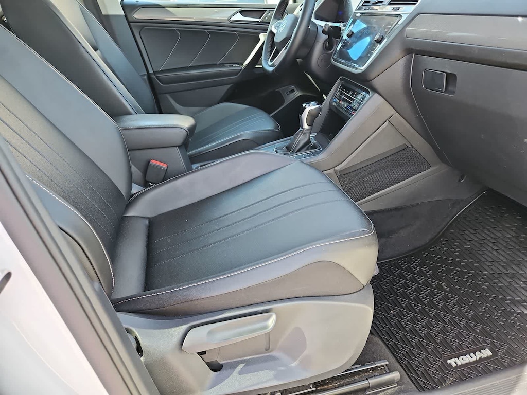 Our stylish One Owner, Accident Free 2024 Volkswagen Tiguan SE is where good things come together for better driving in Pure White! Motivated by a TurboCharged 2.0 Liter 4 Cylinder generating 184hp matched to an 8 Speed Tiptronic Automatic transmission for energetic capability. Also easy to maneuver, our Front Wheel Drive SUV achieves nearly 30mpg on the highway with sporty good looks. Top Tiguan details include LED lighting, 18-inch alloy wheels, silver roof rails, heated power mirrors, heated windshield-washer nozzles, and a convenient power liftgate.