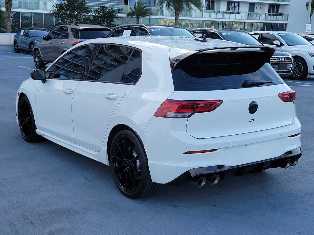 CARFAX One-Owner. Clean CARFAX. Golf R Pure White 2.0T AWD 7-Speed DSG Automatic with Tiptronic 2.0L TSI DOHC Golf R 2.0T, 4D Hatchback, 2.0L TSI DOHC, 7-Speed DSG Automatic with Tiptronic, AWD, Pure White, Titan Black w/Blue Accents w/Perforated Nappa Leather Seating Surfaces, Akrapovic Titanium Axle-Back Exhaust, Deleted Actively Ventilated Front Seats, Diamond-Patterned Cloth Seating Surfaces, Euro Style Package, Padded Door Panels w/ArtVelours Inserts, Panoramic Sunroof Replaced w/Solid Roof.