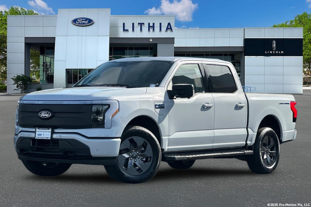 Lithia Ford and Lincoln of Fresno is pleased to offer this Space White Metallic 2025 Ford F-150 Lightning Flash for purchase, this vehicle is well equipped with many features including: 4-Wheel Disc Brakes, 8 Speakers, ABS brakes, ActiveX Trimmed Heated Front Seats, Adjustable pedals, Air Conditioning, Alloy wheels, Auto High-beam Headlights, Auto-dimming Rear-View mirror, Automatic temperature control, Brake assist, Bumpers: body-color, Compass, Delay-off headlights, Driver door bin, Driver vanity mirror, Dual front impact airbags, Dual front side impact airbags, Electronic Stability Control, Emergency communication system: SYNC 4 911 Assist, Four wheel independent suspension, Front anti-roll bar, Front Bucket Seats, Front Center Armrest, Front dual zone A/C, Front reading lights, Fully automatic headlights, Heated door mirrors, Heated front seats, Heated steering wheel, Illuminated entry, Knee airbag, Low tire pressure warning, Navigation system: Connected Navigation, Occupant sensing airbag, Outside temperature display, Overhead airbag, Overhead console, Panic alarm, Passenger door bin, Passenger vanity mirror, Power door mirrors, Power driver seat, Power passenger seat, Power steering, Power windows, Radio data system, Radio: B&O Sound System by Bang & Olufsen, Rear anti-roll bar, Rear reading lights, Rear step bumper, Rear window defroster, Remote keyless entry, Security system, Speed control, Speed-sensing steering, Split folding rear seat, Steering wheel mounted audio controls, SYNC 4A w/Enhanced Voice Recognition, Telescoping steering wheel, Tilt steering wheel, Traction control, Trip computer, Turn signal indicator mirrors, Variably intermittent wipers, and Wheels: 20 Alloy Dark Carbonized Gray. AWD Single-Speed Automatic Electric Motor Flash