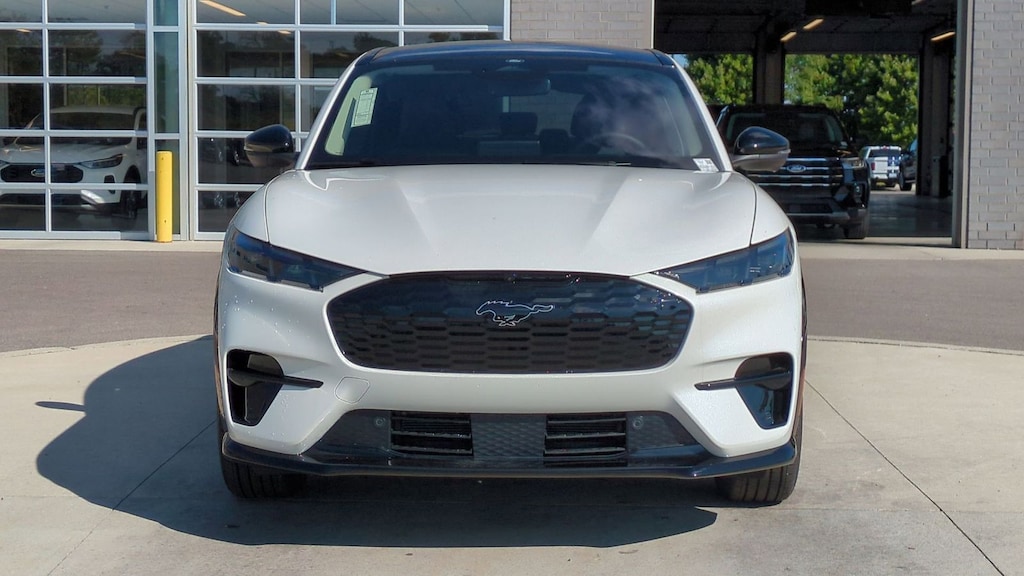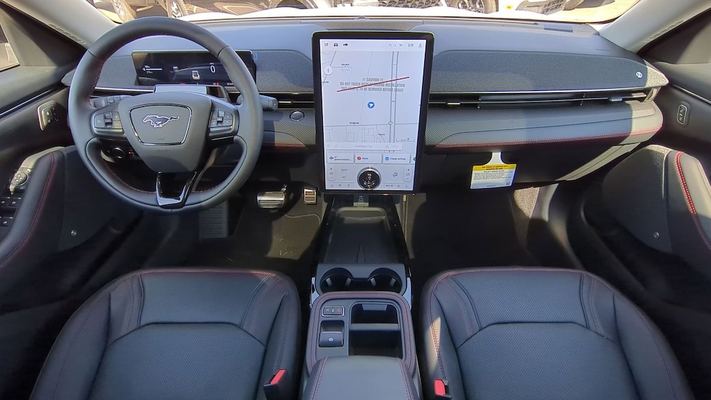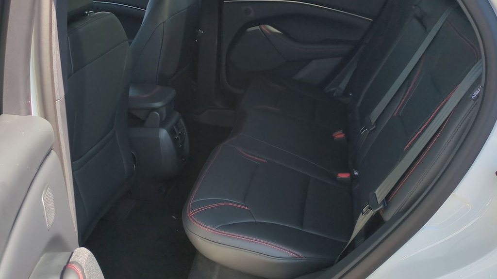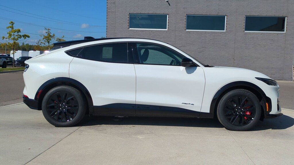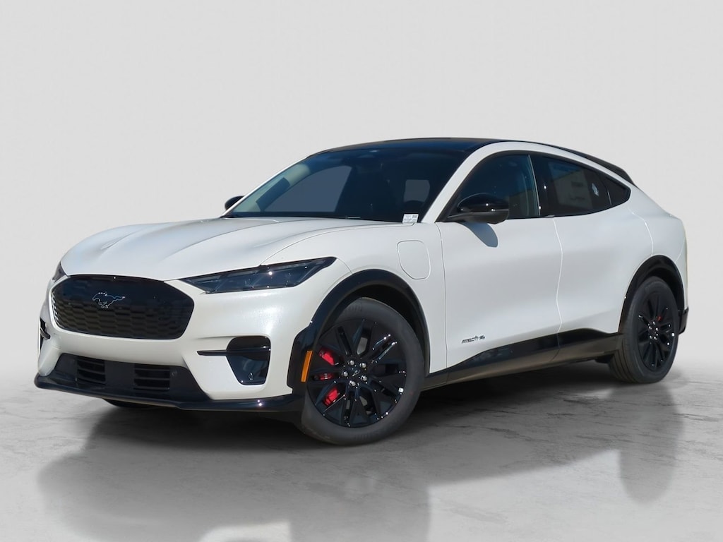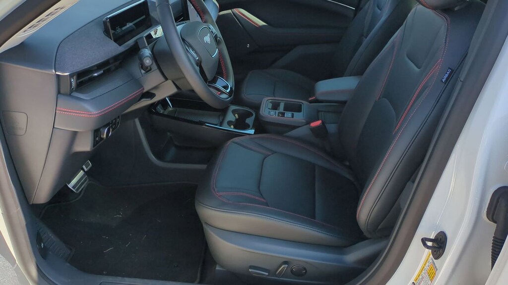 2025 Ford Mustang Mach-E Premium Is nicely equipped with Equipment Group 300A Standard Package, Sport Appearance Package (Brembo Branded Front Brakes, Red Painted Front & Rear Brake Calipers, Sport Pedals, Unique Front Fascia, and Wheels: 19" Monochromatic High Gloss Black-Painted), 10 Speakers, 4-Wheel Disc Brakes, ABS brakes, Air Conditioning, Alloy wheels, AM/FM radio: SiriusXM with 360L, Apple CarPlay/Android Auto, Auto High-beam Headlights, Auto-dimming Rear-View mirror, Automatic temperature control, Brake assist, Bumpers: body-color, Compass, Delay-off headlights, Driver door bin, Driver vanity mirror, Dual front impact airbags, Dual front side impact airbags, Electronic Stability Control, Emergency communication system: 911 Assist, Exterior Parking Camera Rear, Four wheel independent suspension, Front anti-roll bar, Front Bucket Seats, Front Center Armrest, Front dual zone A/C, Front License Plate Bracket, Front reading lights, Fully automatic headlights, Garage door transmitter, Heated door mirrors, Heated front seats, Heated steering wheel, Heated/Ventilated Perforated ActiveX Bucket Seats, Illuminated entry, Internet access capable: FordPass Connect, Knee airbag, Low tire pressure warning, Memory seat, Mobile Power Cord (120V/240V), Navigation system: Connected Navigation, Occupant sensing airbag, Outside temperature display, Overhead airbag, Overhead console, Panic alarm, Panoramic Fixed-Glass Roof, Passenger door bin, Passenger vanity mirror, Power door mirrors, Power driver seat, Power Liftgate, Power passenger seat, Power steering, Power windows, Radio data system, Radio: B&O Sound System by Bang & Olufsen, Rain sensing wipers, Rear anti-roll bar, Rear seat center armrest, Rear side impact airbag, Rear window defroster, Rear window wiper, Remote keyless entry, Security system, SiriusXM w/360L, Speed control, Speed-sensing steering, Speed-Sensitive Wipers, Split folding rear seat, Spoiler, Steering wheel mounted audio controls, SYNC 4A w/Enhanced Voice Recognition, Telescoping steering wheel, Tilt steering wheel, Traction control, Trip computer, Turn signal indicator mirrors, Variably intermittent wipers, Ventilated front seats, and Wheels: 19" Bright Machined-Face Aluminum. Factory MSRP: $57,505 Dealer Discount of $3,085 off MSRP