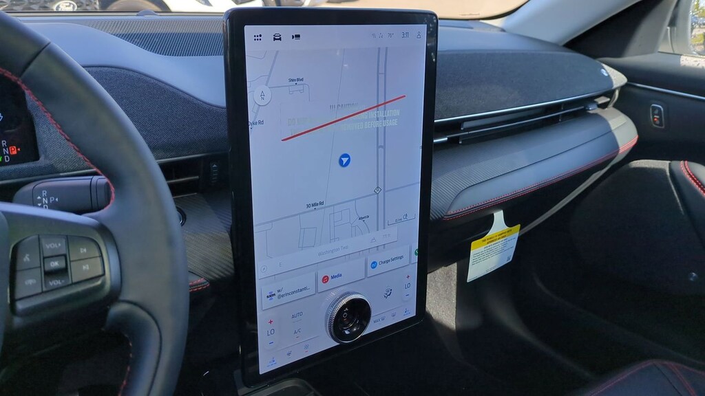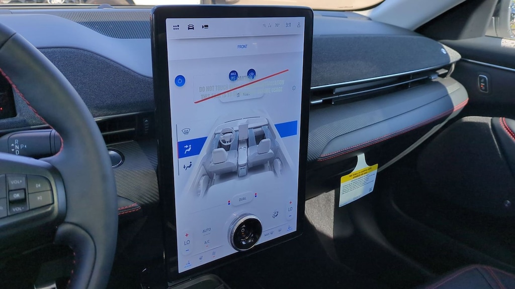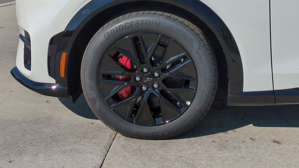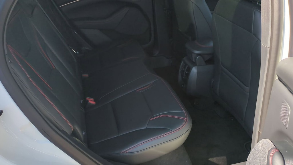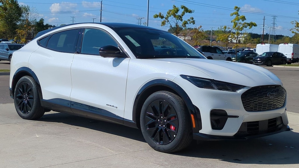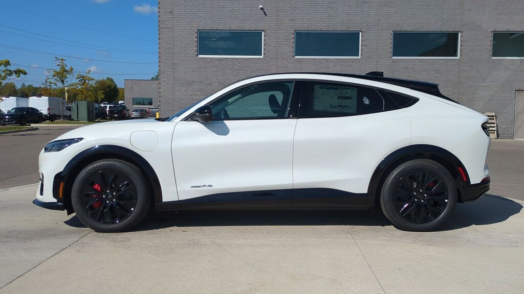 2025 Ford Mustang Mach-E Premium Is nicely equipped with Equipment Group 300A Standard Package, Sport Appearance Package (Brembo Branded Front Brakes, Red Painted Front & Rear Brake Calipers, Sport Pedals, Unique Front Fascia, and Wheels: 19" Monochromatic High Gloss Black-Painted), 10 Speakers, 4-Wheel Disc Brakes, ABS brakes, Air Conditioning, Alloy wheels, AM/FM radio: SiriusXM with 360L, Apple CarPlay/Android Auto, Auto High-beam Headlights, Auto-dimming Rear-View mirror, Automatic temperature control, Brake assist, Bumpers: body-color, Compass, Delay-off headlights, Driver door bin, Driver vanity mirror, Dual front impact airbags, Dual front side impact airbags, Electronic Stability Control, Emergency communication system: 911 Assist, Exterior Parking Camera Rear, Four wheel independent suspension, Front anti-roll bar, Front Bucket Seats, Front Center Armrest, Front dual zone A/C, Front License Plate Bracket, Front reading lights, Fully automatic headlights, Garage door transmitter, Heated door mirrors, Heated front seats, Heated steering wheel, Heated/Ventilated Perforated ActiveX Bucket Seats, Illuminated entry, Internet access capable: FordPass Connect, Knee airbag, Low tire pressure warning, Memory seat, Mobile Power Cord (120V/240V), Navigation system: Connected Navigation, Occupant sensing airbag, Outside temperature display, Overhead airbag, Overhead console, Panic alarm, Panoramic Fixed-Glass Roof, Passenger door bin, Passenger vanity mirror, Power door mirrors, Power driver seat, Power Liftgate, Power passenger seat, Power steering, Power windows, Radio data system, Radio: B&O Sound System by Bang & Olufsen, Rain sensing wipers, Rear anti-roll bar, Rear seat center armrest, Rear side impact airbag, Rear window defroster, Rear window wiper, Remote keyless entry, Security system, SiriusXM w/360L, Speed control, Speed-sensing steering, Speed-Sensitive Wipers, Split folding rear seat, Spoiler, Steering wheel mounted audio controls, SYNC 4A w/Enhanced Voice Recognition, Telescoping steering wheel, Tilt steering wheel, Traction control, Trip computer, Turn signal indicator mirrors, Variably intermittent wipers, Ventilated front seats, and Wheels: 19" Bright Machined-Face Aluminum. Factory MSRP: $57,505 Dealer Discount of $3,085 off MSRP