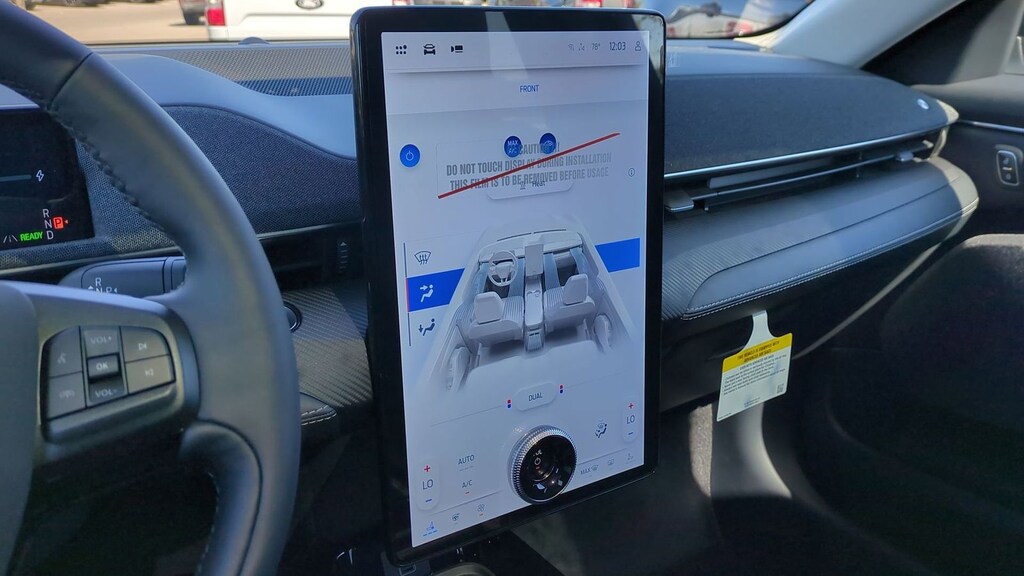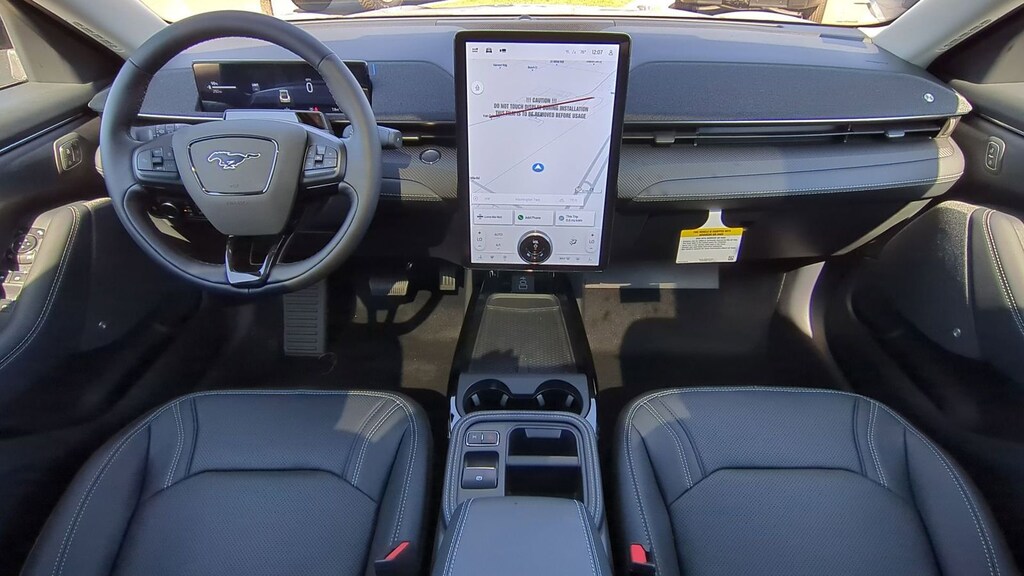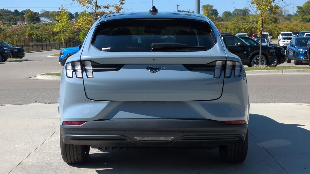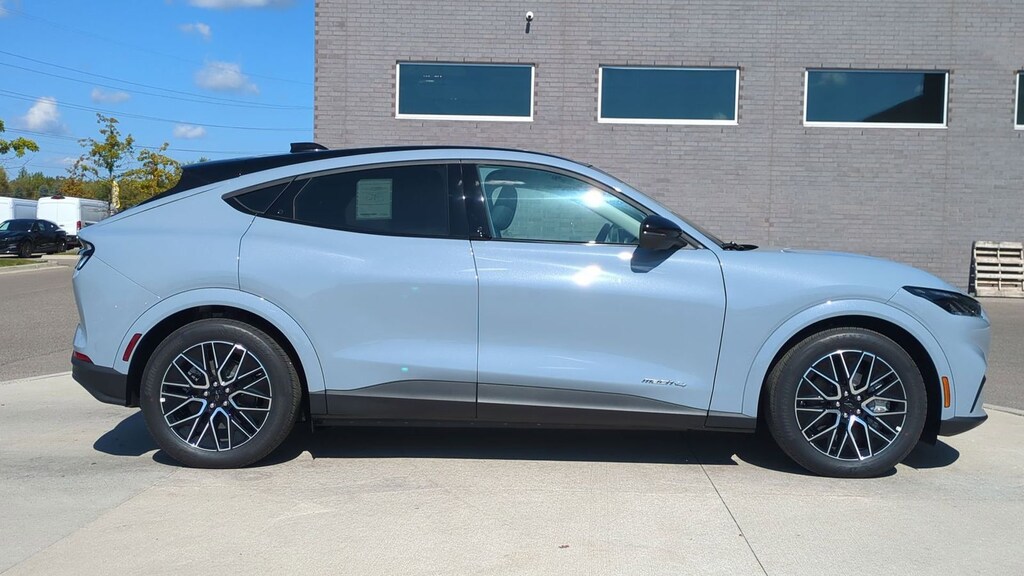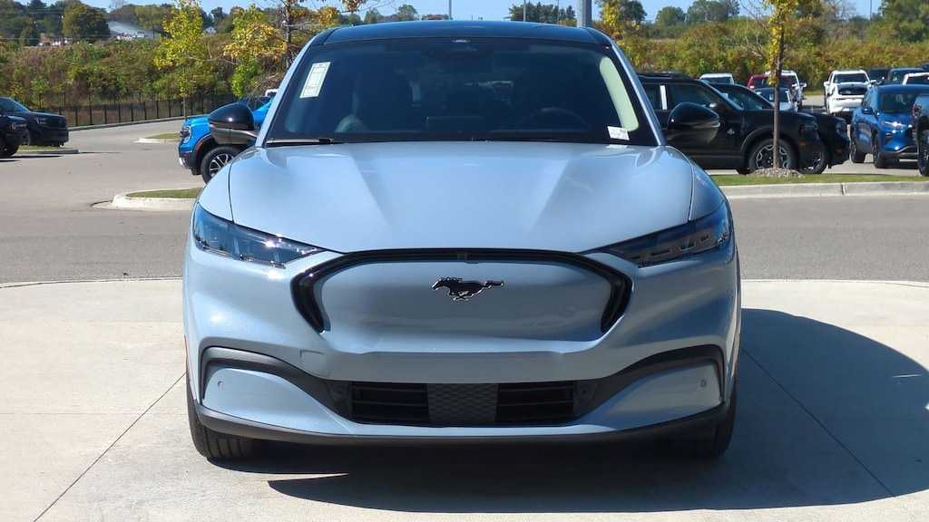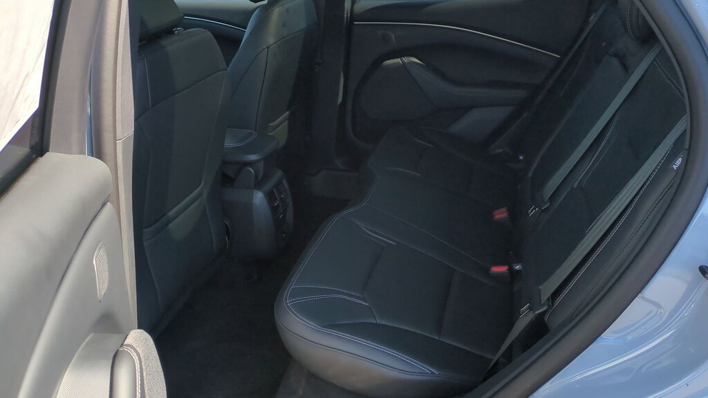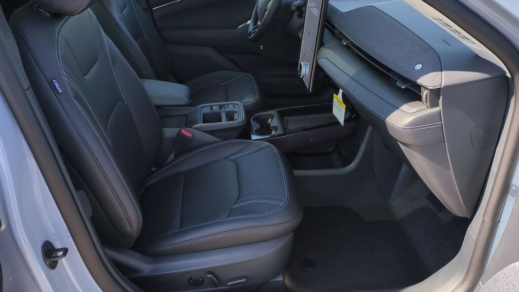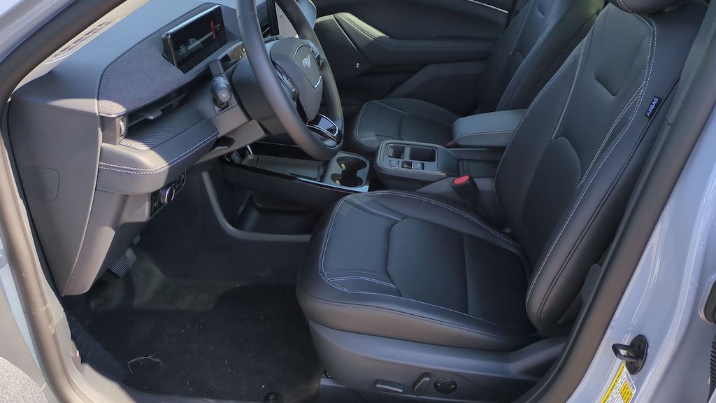 2025 Ford Mustang Mach-E Premium Is nicely equipped with Equipment Group 300A Standard Package, Interior Protection Package (1st & 2nd Row Floor Liners w/o Carpet Mats, Cargo Area Cover, and Cargo Floor Liner), 10 Speakers, 4-Wheel Disc Brakes, ABS brakes, Air Conditioning, Alloy wheels, AM/FM radio: SiriusXM with 360L, Apple CarPlay/Android Auto, Auto High-beam Headlights, Auto-dimming Rear-View mirror, Automatic temperature control, Brake assist, Bumpers: body-color, Compass, Delay-off headlights, Driver door bin, Driver vanity mirror, Dual front impact airbags, Dual front side impact airbags, Electronic Stability Control, Emergency communication system: 911 Assist, Exterior Parking Camera Rear, Four wheel independent suspension, Front anti-roll bar, Front Bucket Seats, Front Center Armrest, Front dual zone A/C, Front License Plate Bracket, Front reading lights, Fully automatic headlights, Garage door transmitter, Heated door mirrors, Heated front seats, Heated steering wheel, Heated/Ventilated Perforated ActiveX Bucket Seats, Illuminated entry, Internet access capable: FordPass Connect, Knee airbag, Low tire pressure warning, Memory seat, Mobile Power Cord (120V/240V), Navigation system: Connected Navigation, Occupant sensing airbag, Outside temperature display, Overhead airbag, Overhead console, Panic alarm, Panoramic Fixed-Glass Roof, Passenger door bin, Passenger vanity mirror, Power door mirrors, Power driver seat, Power Liftgate, Power passenger seat, Power steering, Power windows, Radio data system, Radio: B&O Sound System by Bang & Olufsen, Rain sensing wipers, Rear anti-roll bar, Rear seat center armrest, Rear side impact airbag, Rear window defroster, Rear window wiper, Remote keyless entry, Security system, SiriusXM w/360L, Speed control, Speed-sensing steering, Speed-Sensitive Wipers, Split folding rear seat, Spoiler, Steering wheel mounted audio controls, SYNC 4A w/Enhanced Voice Recognition, Telescoping steering wheel, Tilt steering wheel, Traction control, Trip computer, Turn signal indicator mirrors, Variably intermittent wipers, Ventilated front seats, and Wheels: 19" Bright Machined-Face Aluminum. Factory MSRP: $55,060 Dealer Discount of $2,932 off MSRP