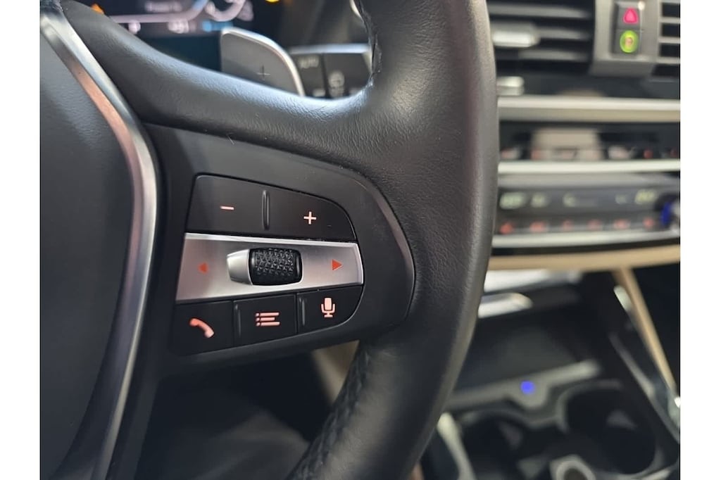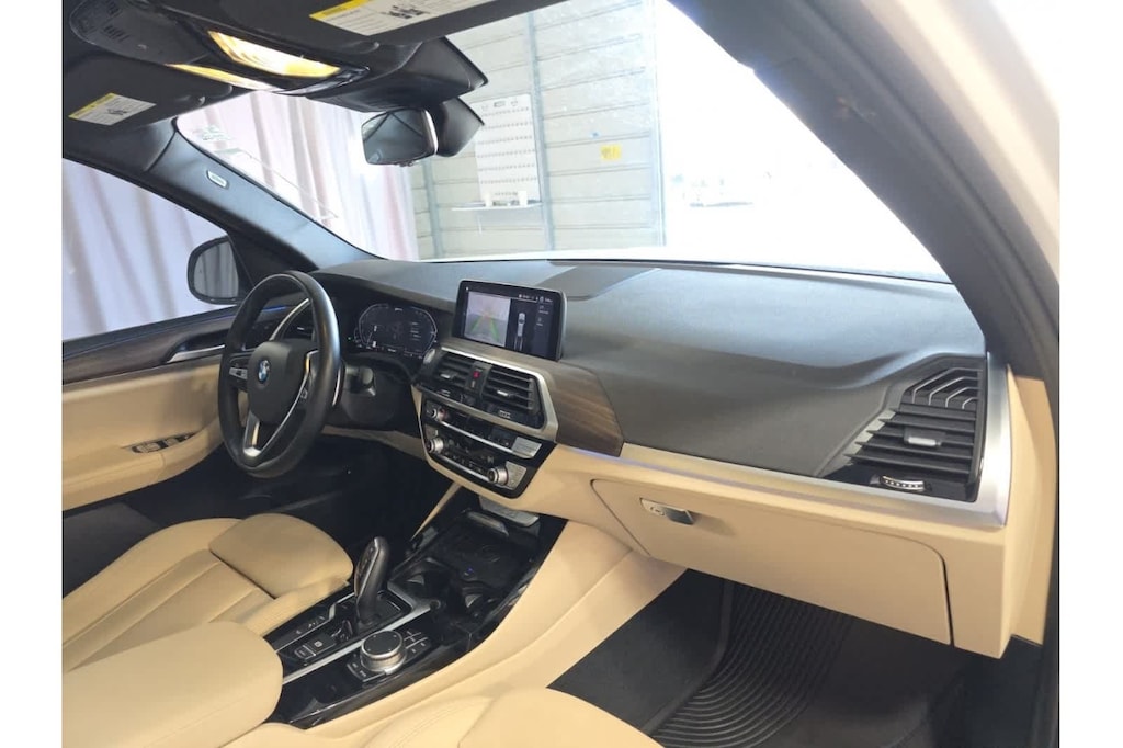 This X3 xDrive30e is finished in the Alpine White exterior paint and Canberra Beige/Black Artificial Leather interior.