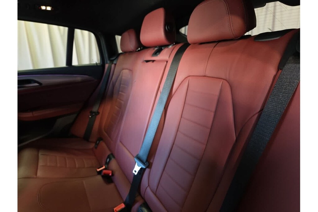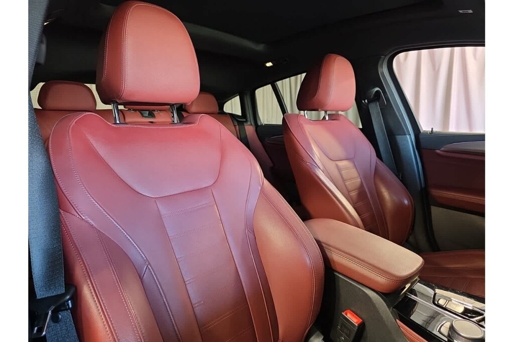 This X4 M40i is finished in the Black Sapphire Metallic exterior paint and Tacora Red Leather interior.