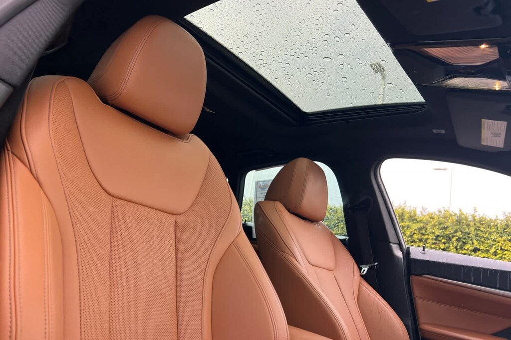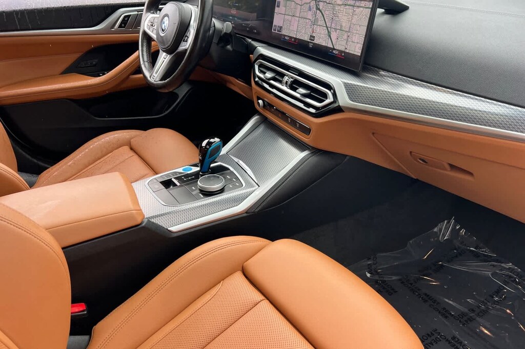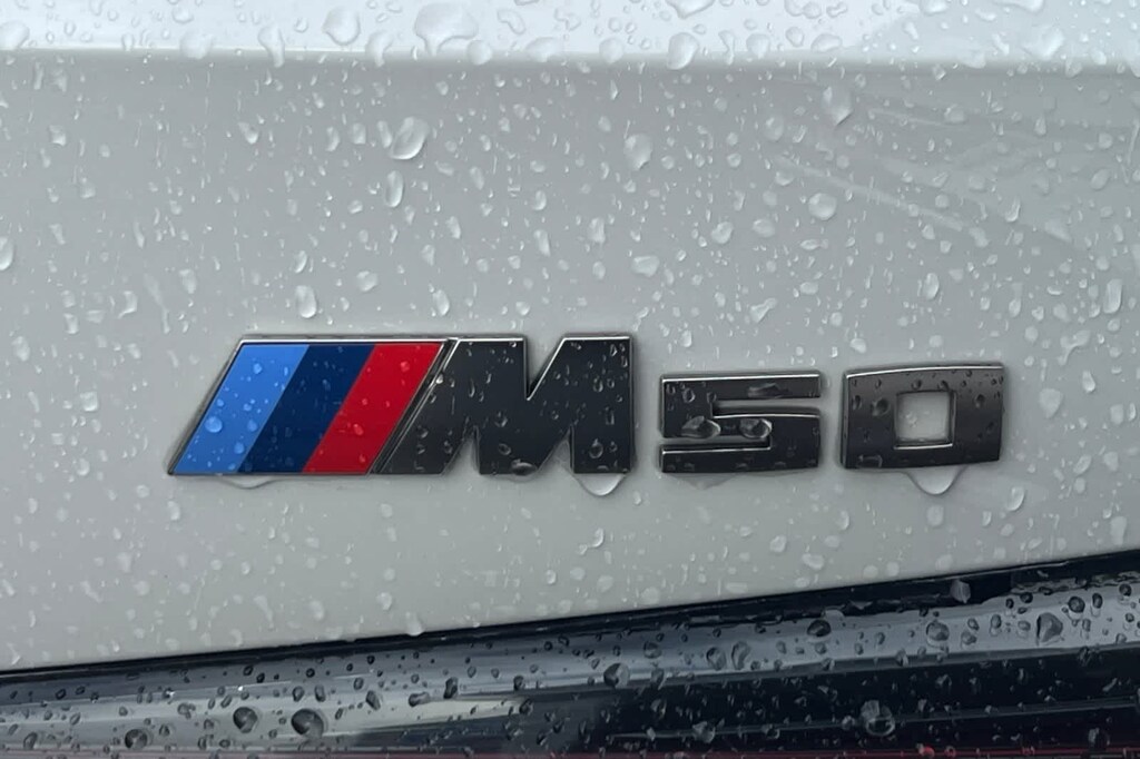 This i4 M50 is finished in the Mineral White Metallic exterior paint and Cognac Artificial Leather interior.