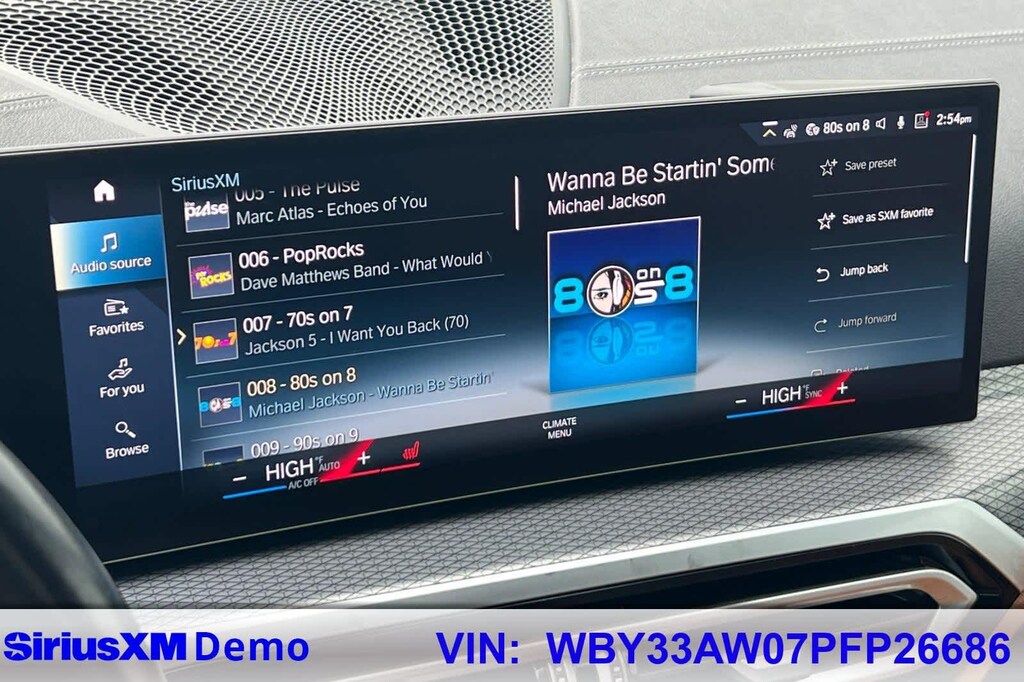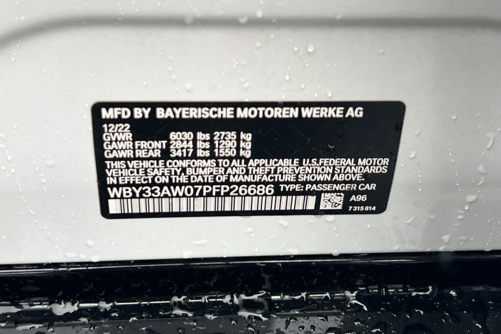 Features a, Electric Motor, All Wheel Drive, Active Driving Assistant Pro, Active Park Distance Control, Ambient Lighting, BMW Curved Display w/HUD, Connected Package Pro, Driver Lumbar Support, Driving Assistance Professional Package, Extended Shadowline Trim, Extended Traffic Jam Assistant, Heated Front Seats, Heated Steering Wheel, M Shadowline Lights, M Sport Brakes w/Red Calipers, M Sport Package Pro, Navigation System, Navigation system: BMW Maps Navigation, Parking Assistance Package, Parking Assistant Plus, Premium Package, Rear-View Camera, Shadowline Package, Surround View w/3D View, Wheels: 19 x 8.5 Fr 19 x 9.0 Rr M Double Spoke. Electric Motor Single-Speed Automatic AWD