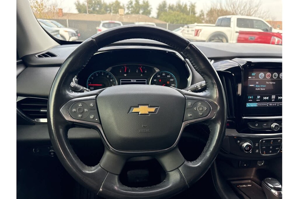 This Traverse Premier is finished in the Pepperdust Metallic exterior paint and Jet Black Leather interior.
