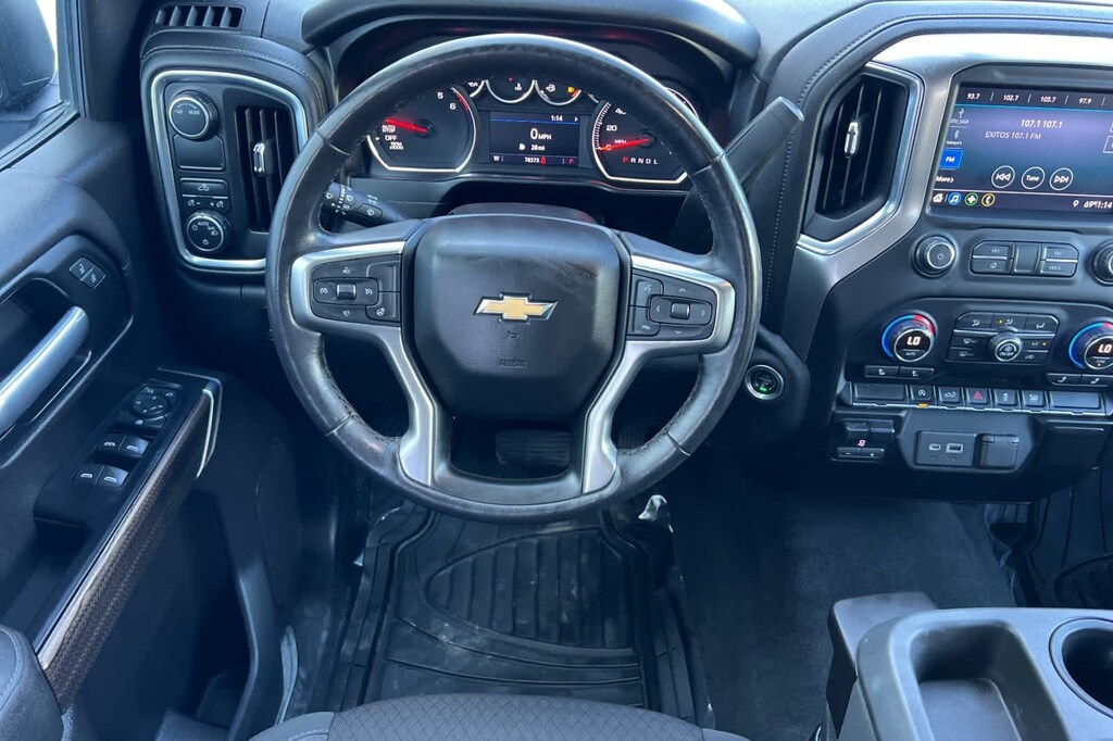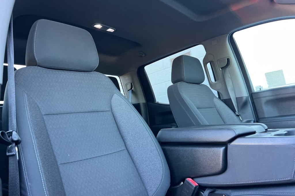 This Silverado 1500 LT is finished in the Shadow Gray Metallic exterior paint and Jet Black Cloth interior.