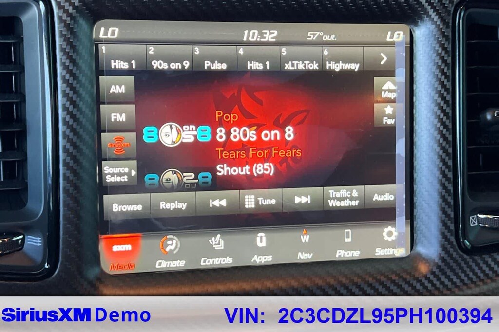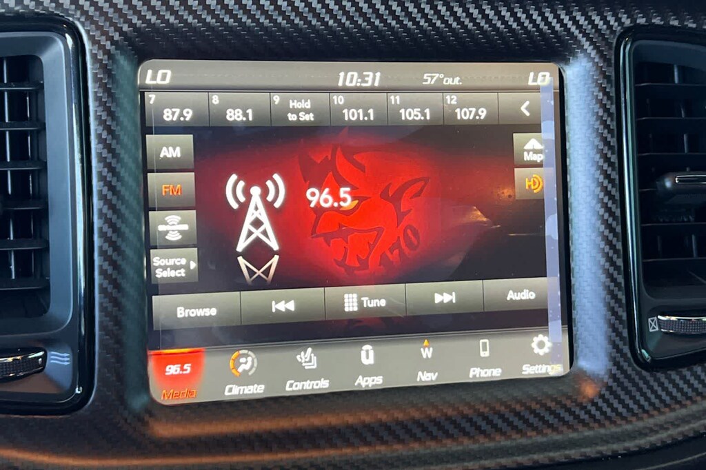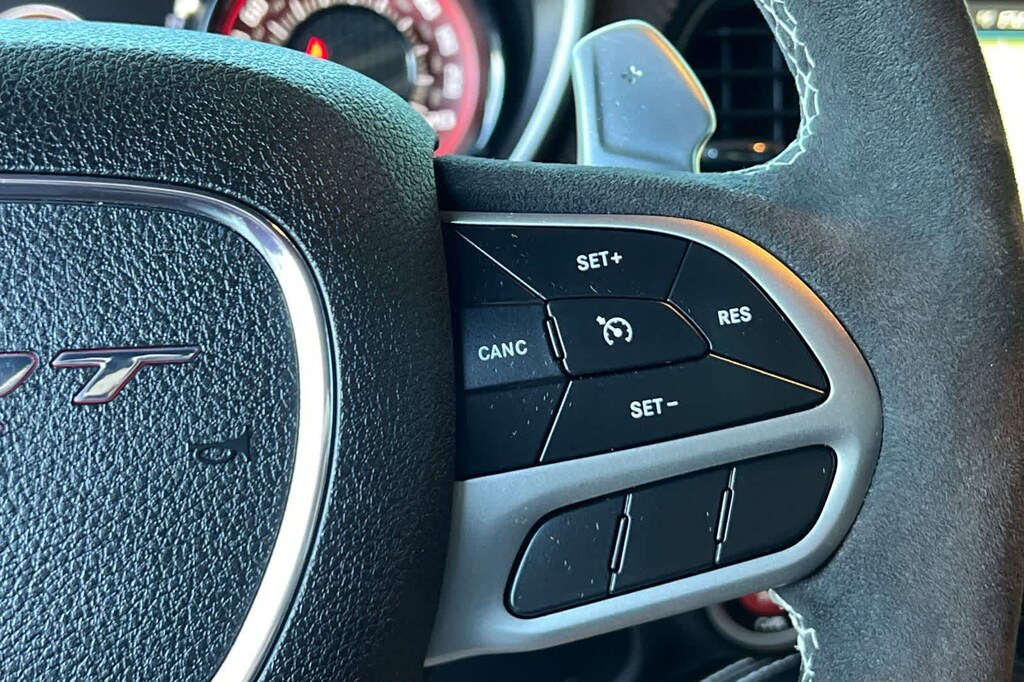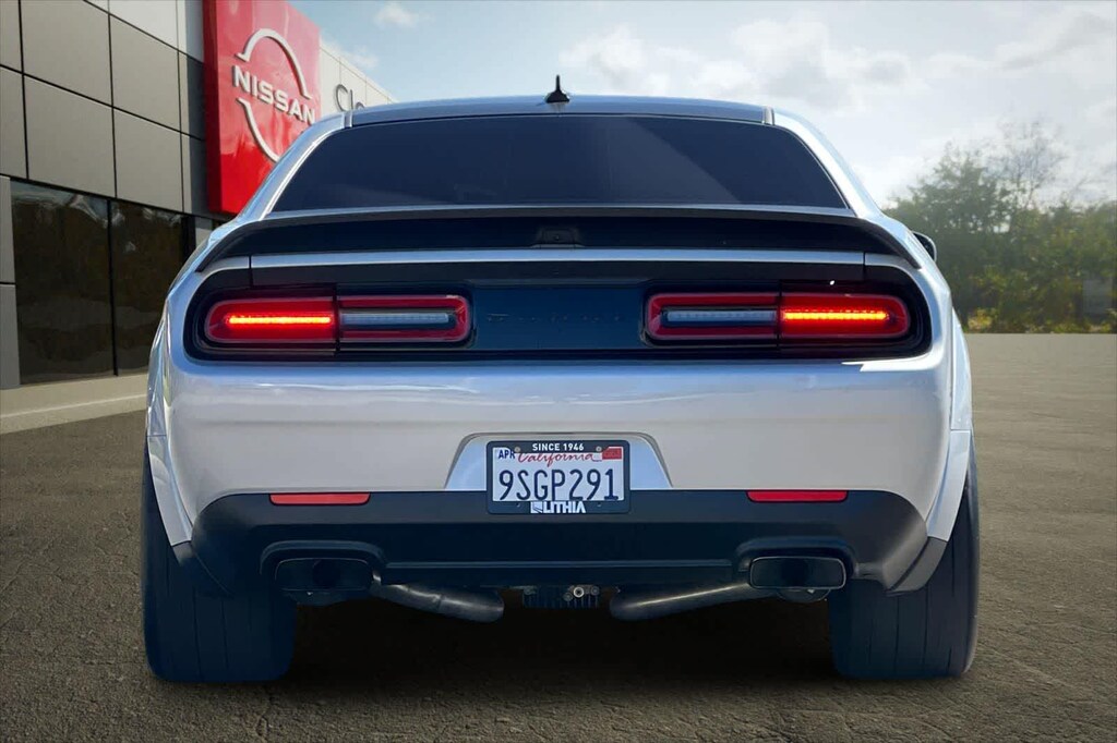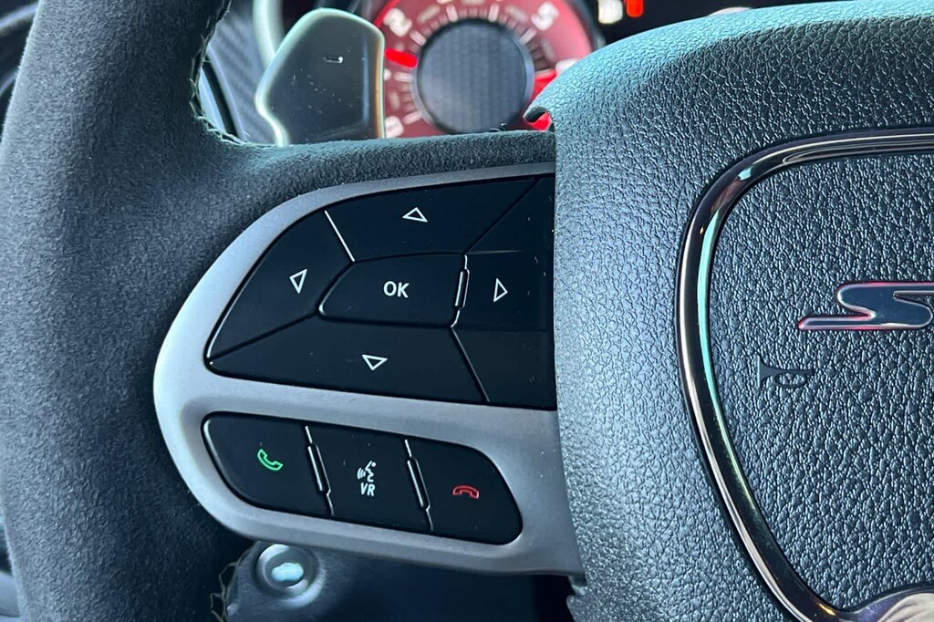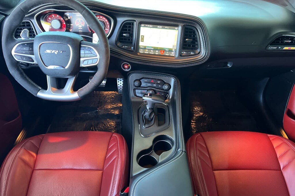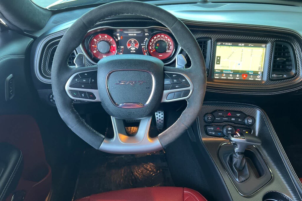 Features a, 170 Drag Suspension, 2-Speaker Minimal Audio, 240 mm Rear Axle, 3.09 Rear Axle Ratio, 4-Piston Brakes w/Yellow Logo, 4G LTE Wi-Fi Hot Spot, 5-Year SiriusXM Traffic Service, 5-Year SiriusXM Travel Link Service, 8.4 Touchscreen Display, Air-Grabber Hood, All Radio Equipped Vehicles, All VP4R Radios, Apple CarPlay, Black Brake Calipers, Compass Gauge, DC Illuminated Air Catcher Headlamps, Delete Sound Insulation, Delete Trunk Carpet, Delete Trunk Lamp & Bright Pedals, Exterior Plastics Module, Flex Fuel Vehicle, For Details, Visit DriveUconnect.com, For More Info, Call 800-643-2112, Google Android Auto, GPS Antenna Input, GPS Navigation, HD Radio, High-Intensity Discharge Headlamps, Integrated Center Stack Radio, Integrated Voice Command w/Bluetooth, Media Hub (2 USB, AUX), Quick Order Package 27Q Redeye Widebody, Radio: Uconnect 4C Nav w/8.4 Display, Real Carbon Fiber Interior Accents, Rear Body Flares, Red LED Alcantara Steering Wheel, Satin Black Dodge Tail Lamp Badge, Shark Fin Antenna, SiriusXM Radio Service, SiriusXM Satellite Radio, SiriusXM Traffic Plus, SiriusXM Travel Link, SRT Demon 170, SRT Demon 170 Exterior Badging, SRT Demon 170 IP Badge, SRT Performance Spoiler, Transbrake, USB Host Flip, Wheels: 18 x 8 Fr & 17 x 11 Rr Forged Aluminum. 6.2L V8 Supercharged 8-Speed Automatic RWD