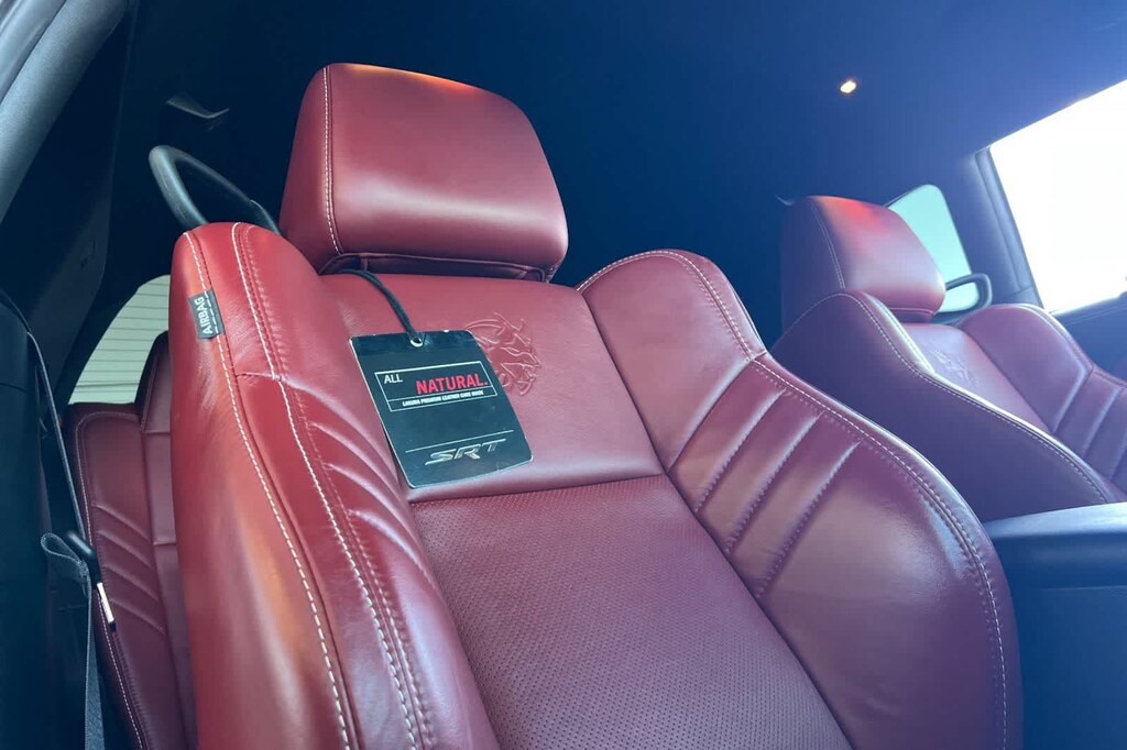 This Challenger SRT Hellcat Redeye Widebody is finished in the Triple Nickel Clearcoat exterior paint and Ruby Red/Black Leather interior.