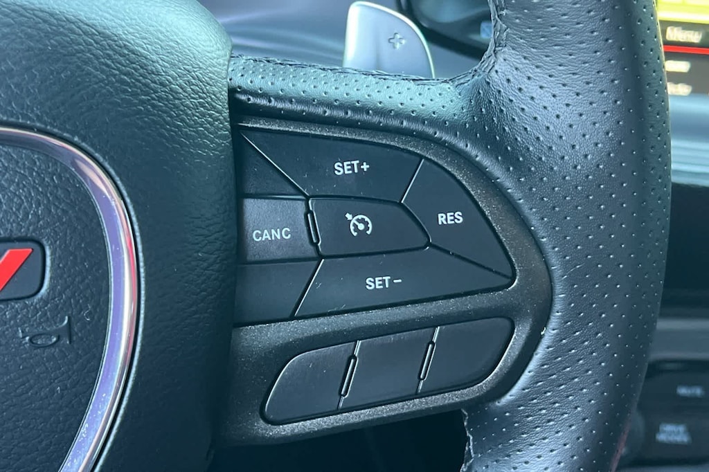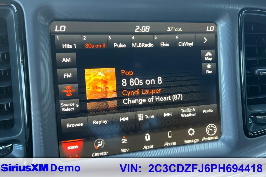 Features a, 4G LTE Wi-Fi Hot Spot, 5-Year SiriusXM Traffic Service, 5-Year SiriusXM Travel Link Service, 506 Watt Amplifier, 8.4 Touchscreen Display, 9 Amplified Speakers w/Subwoofer, All Radio Equipped Vehicles, All VP4R Radios, Alpine Audio Group w/Subwoofer, Apple CarPlay, Compass Gauge, For Details, Visit DriveUconnect.com, For More Info, Call 800-643-2112, Google Android Auto, GPS Antenna Input, GPS Navigation, HD Radio, Integrated Center Stack Radio, Integrated Voice Command w/Bluetooth, Media Hub (2 USB, AUX), Navigation System, Quick Order Package 24G R/T Scat Pack, Radio: Uconnect 4C Nav w/8.4 Display, Shark Fin Antenna, SiriusXM Radio Service, SiriusXM Satellite Radio, SiriusXM Traffic Plus, SiriusXM Travel Link, Surround Sound, USB Host Flip. SRT HEMI 6.4L V8 MDS 8-Speed Automatic RWD