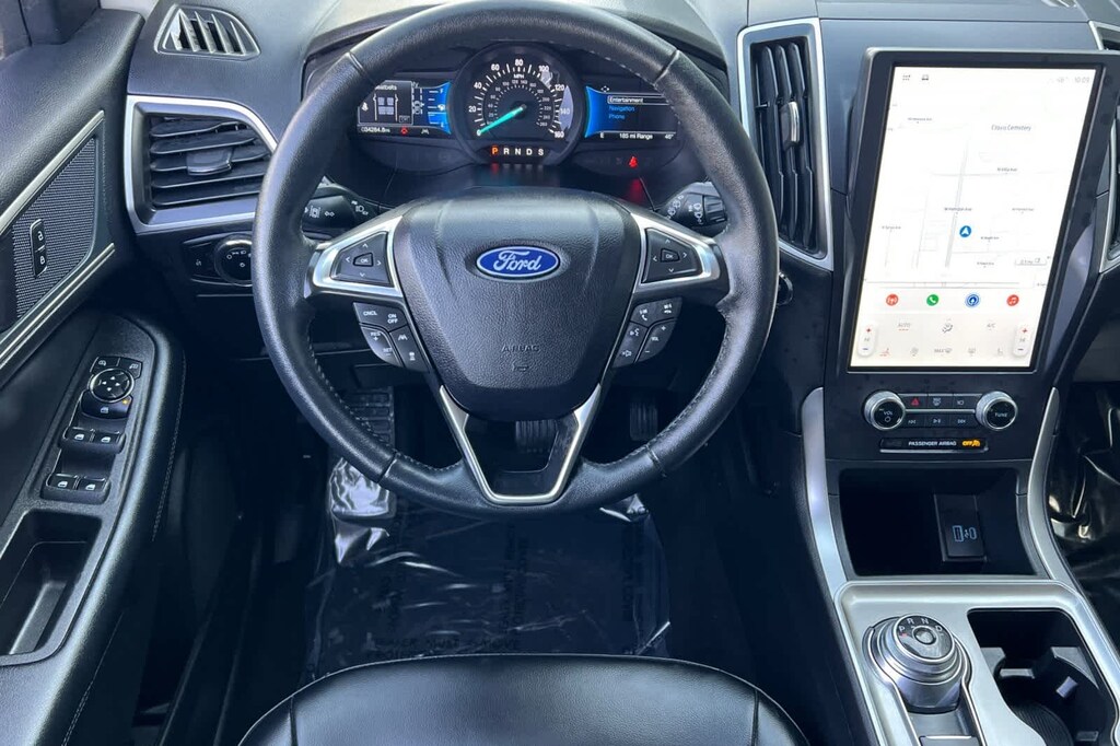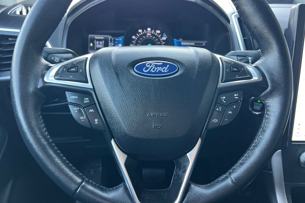 Features a, SEL trim. Back-Up Camera, Onboard Communications System, Auto-Off Headlights Rear Head Air Bag, Side Head Air Bag, All Wheel Drive, Aluminum Wheels, Privacy Glass, Child Safety Locks,, Adaptive Cruise Control w/Stop & Go, Connected Navigation, Equipment Group 201A, Evasive Steering Assist, Ford Co-Pilot360 Assist+, Lane Centering, Leather-Wrapped Steering Wheel. EcoBoost 2.0L I4 GTDi DOHC Turbocharged VCT 8-Speed Automatic AWD