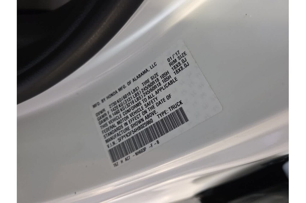 * JD Power Automotive Performance, Execution and Layout (APEAL) Study * 2017 IIHS Top Safety Pick+ (When equipped with Honda Sensing and specific headlights) * NACTOY 2017 North American Truck of the Year * 2017 KBB.com 10 Favorite New-for-2017 Cars * 2017 KBB.com Best Resale Value Awards * 2017 KBB.com 10 Most Awarded Brands * 2017 KBB.com Brand Image Awards