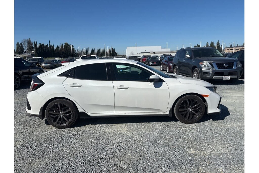 This Civic Sport is finished in the Platinum White Pearl exterior paint and Black Cloth interior.