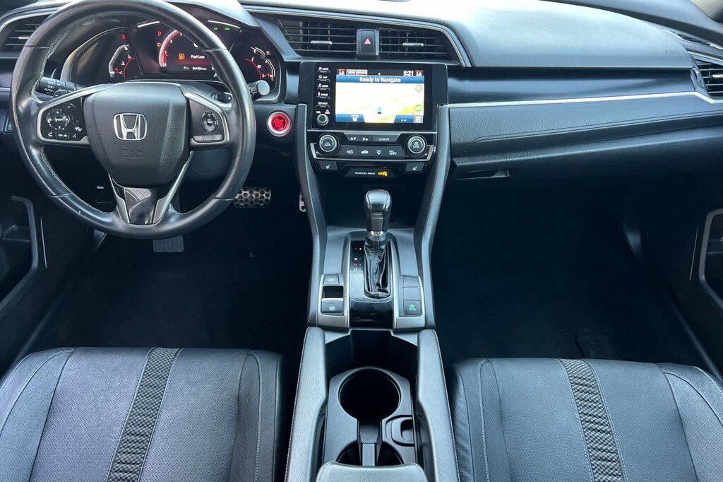 This Civic Sport Touring is finished in the Silver exterior paint and Black Cloth interior.