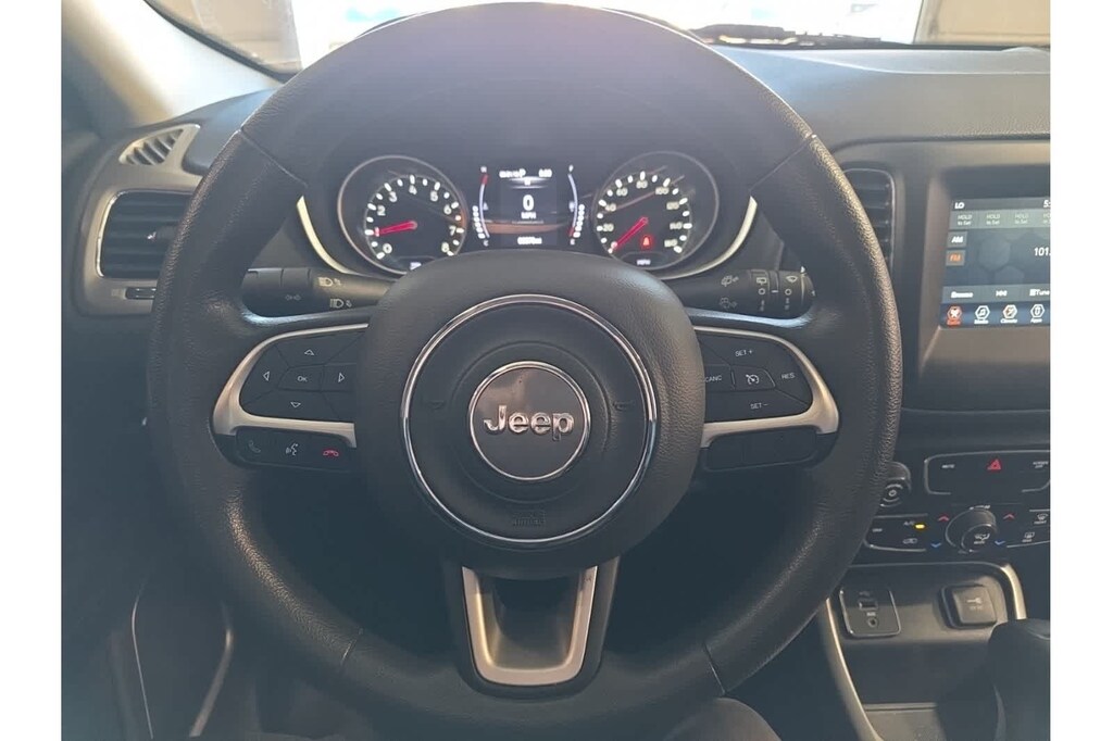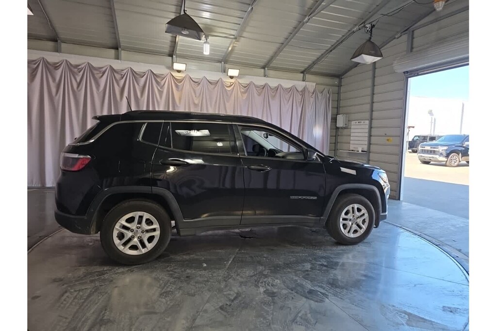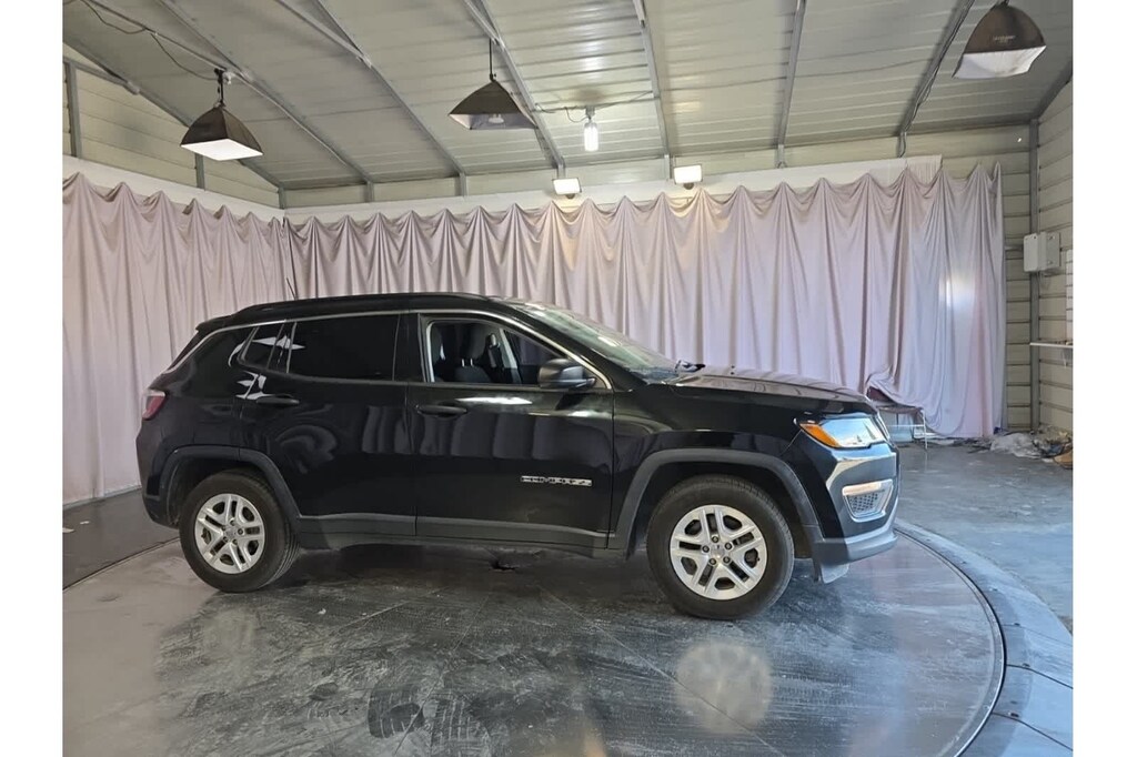 This Compass Sport is finished in the Diamond Black Crystal Pearlcoat exterior paint and Black Cloth interior.