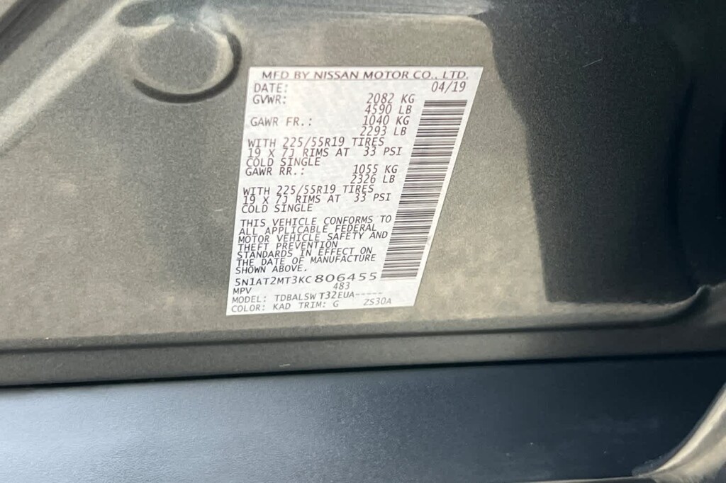 - Front tires: 225/55VR19.0