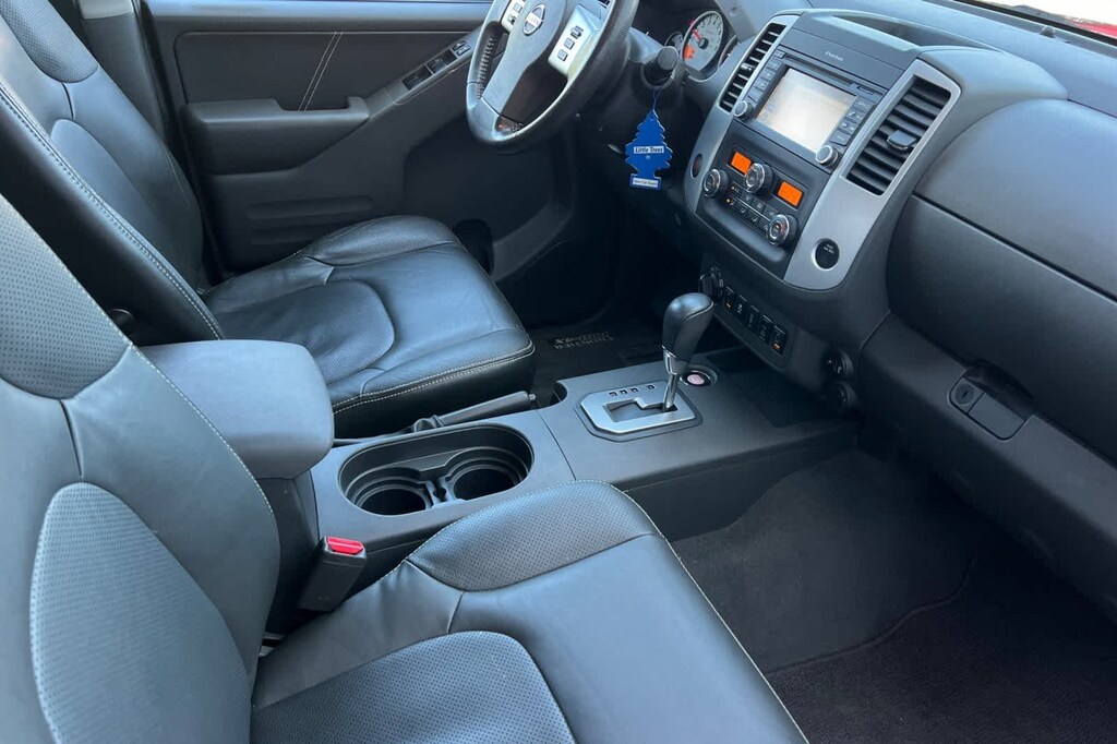 This Frontier PRO-4X is finished in the Cayenne Red Metallic exterior paint and Pro-4x Leather interior.