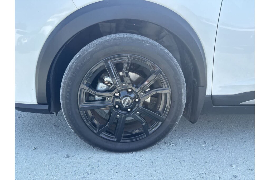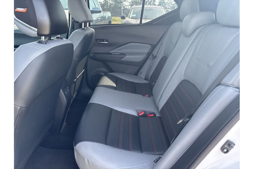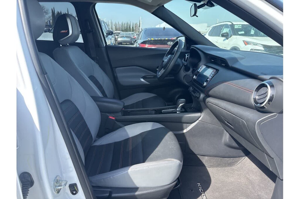 This Kicks SR is finished in the Aspen White Tricoat/Super Black exterior paint and Charcoal Cloth interior.