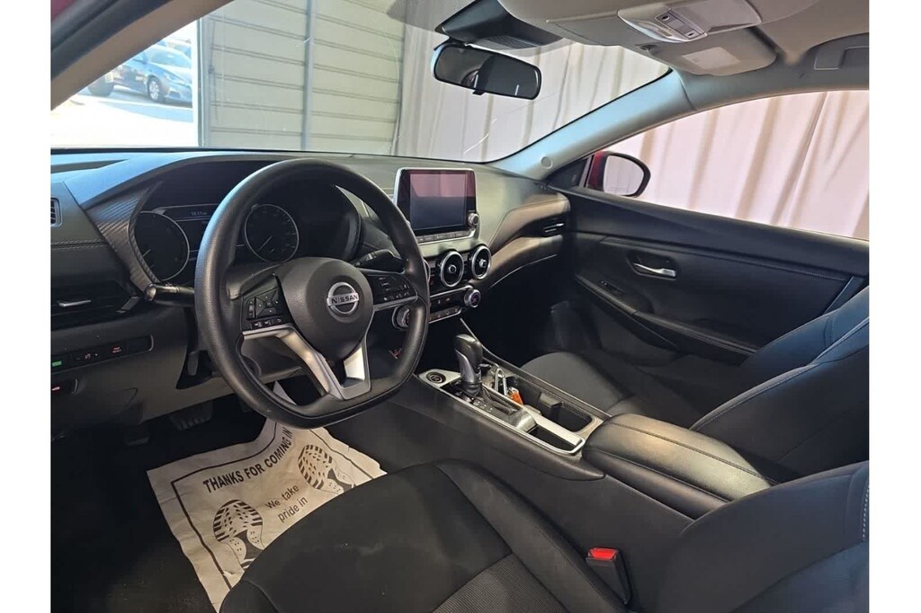This Sentra SV is finished in the Scarlet Ember Tintcoat exterior paint and black Cloth interior.
