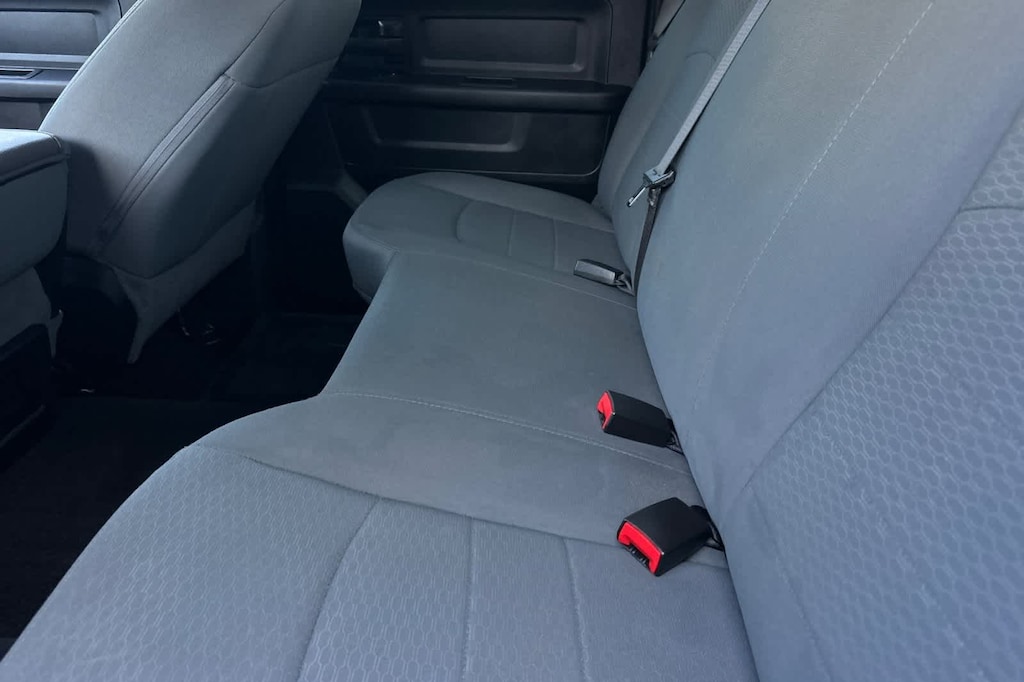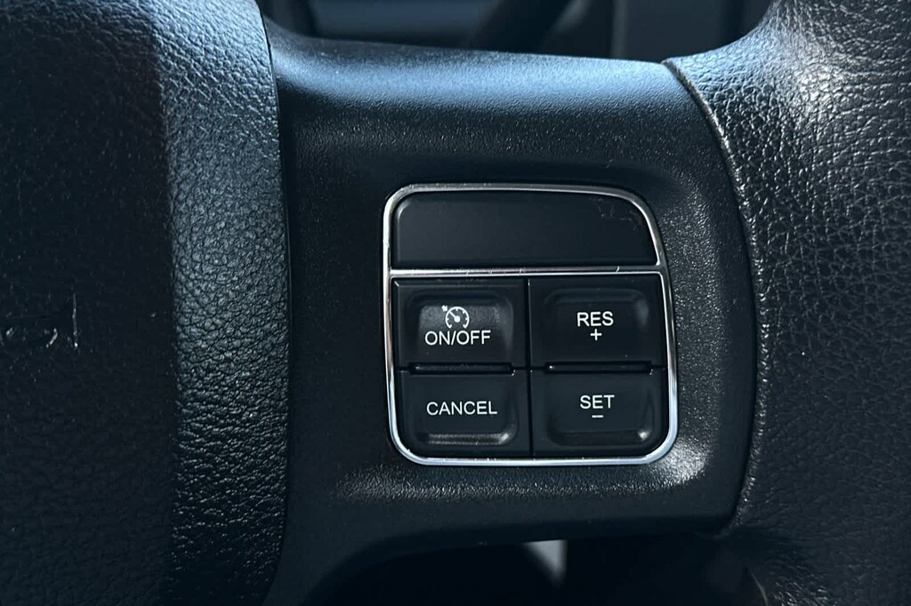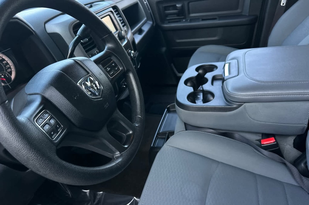 Features a, Tradesman trim. Auto-Off Headlights, iPod/MP3 Input, Trailer Hitch Rear Head Air Bag, Side Head Air Bag, Privacy Glass, Child Safety Locks, Electronic Stability Control, Brake Assist, 4-Wheel ABS., 220 Amp Alternator, 5.0 Touchscreen Display, Anti-Spin Differential Rear Axle, Bright Front Bumper, Bright Grille, Bright Rear Bumper, Carpet Floor Covering, Charge Only Remote USB Port, Chrome Appearance Group, Cloth 40/20/40 Bench Seat, Front & Rear Floor Mats, Front Armrest w/Cupholders, GPS Antenna Input, Integrated Voice Command w/Bluetooth, Media Hub (USB, AUX), Overhead Console, ParkSense Rear Park Assist System, ParkView Rear Back-Up Camera, Popular Equipment Group, Quick Order Package 22A Tradesman, Radio: Uconnect 3 w/5 Display, Rear View Auto Dim Mirror w/Display, Remote Keyless Entry, SiriusXM Satellite Radio, Storage Tray, Temperature & Compass Gauge, Trailer Brake Control, Wheels: 18 x 8.0 Steel Chrome Clad. 6.4L Heavy Duty V8 HEMI w/MDS 6-Speed Automatic RWD