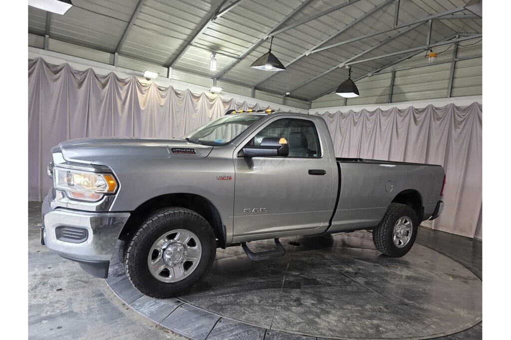 This 2500 Tradesman is finished in the Billet Silver Metallic Clearcoat exterior paint and Diesel Gray/Black Vinyl interior.