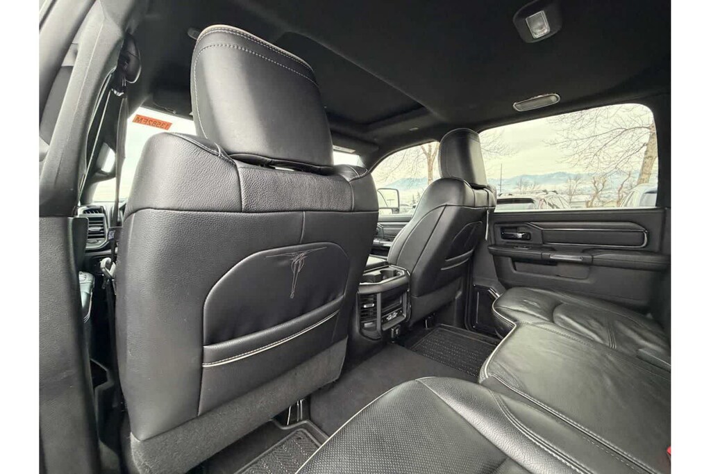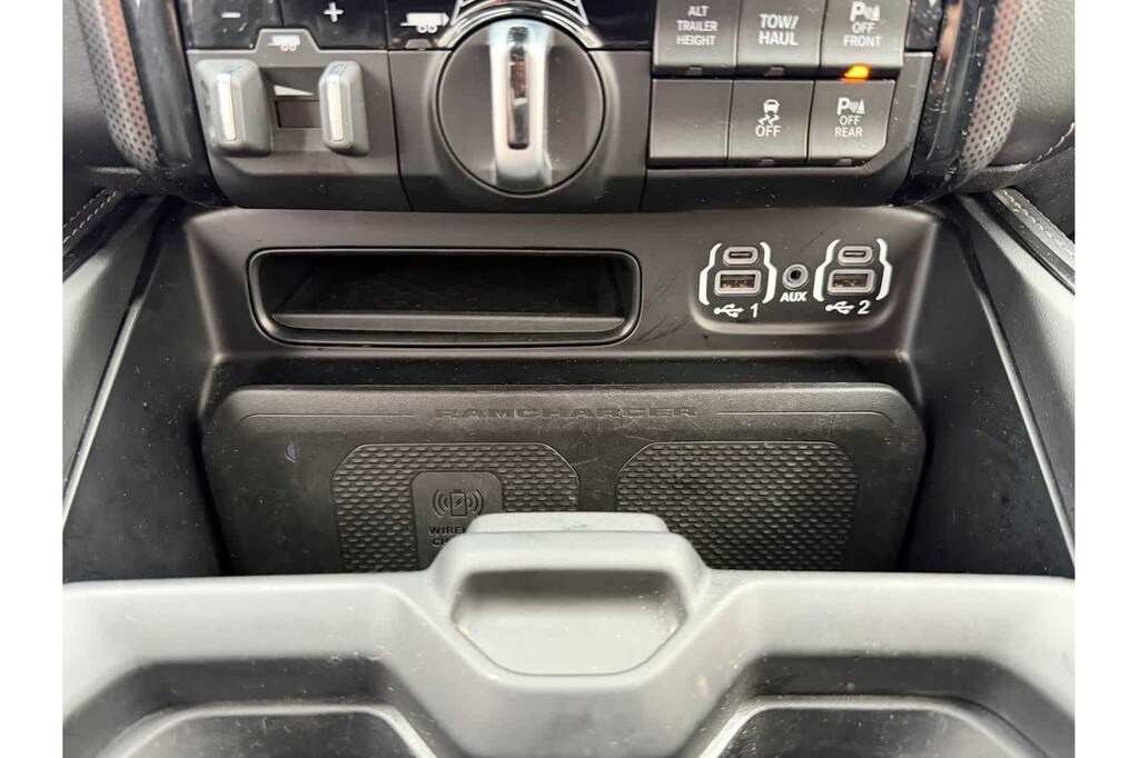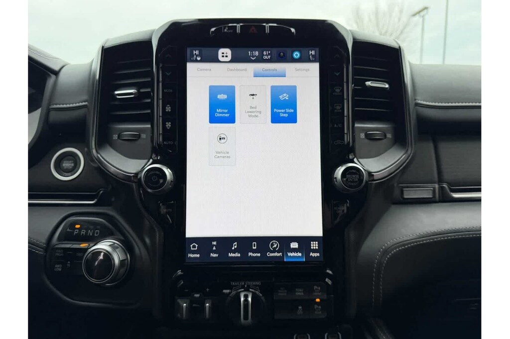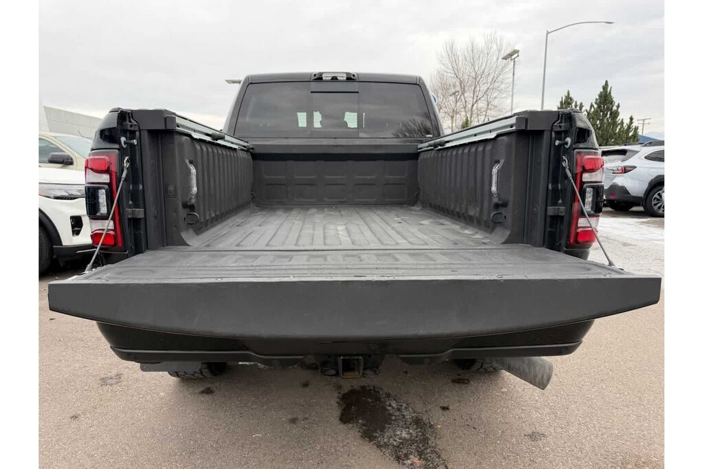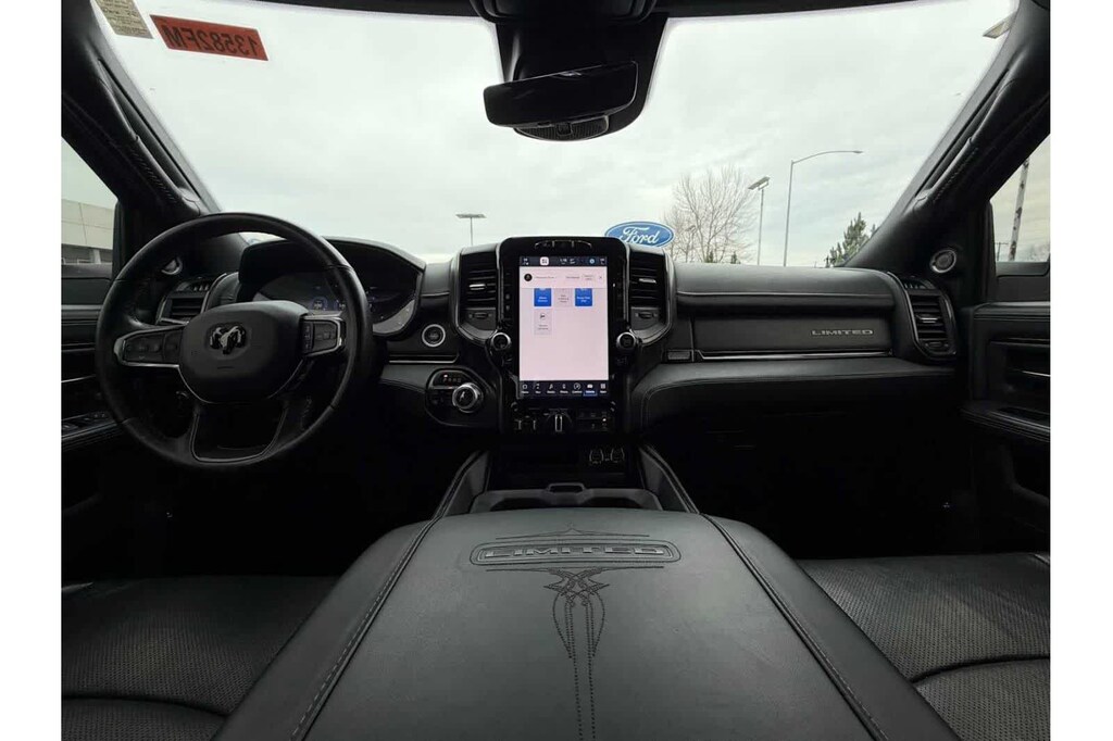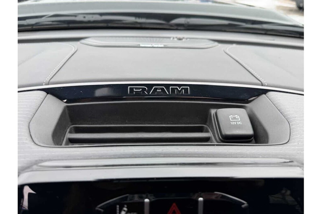 Features a, Four Wheel Drive, 12 Touchscreen Display, 17 Speaker harman/kardon Premium Sound, 4 Adjustable Cargo Tie-Down Hooks, Adaptive Cruise Control w/Stop, Adaptive Steering System, Alexa Built-In, Apple CarPlay, Black Exterior Truck Badging, Black Headlamp Bezels, Black Limited Grille, Black RAM Head Tailgate Badge, Black Tail Lamp Bezels, Black Wheel Center Hub, Body Color Grille Surround, Center Hub, Connected Travel & Traffic Services, Connectivity - US/Canada, CTR Stop Lamp w/Cargo View Camera, Digital 3.0 Rear View Auto Dimming Mirror, Digital Rearview Mirror, Disassociated Touchscreen Display, Full Speed Forward Collision Warning Plus, Google Android Auto, GPS Antenna Input, GPS Navigation, HD Radio, Integrated Voice Command w/Bluetooth, Lane Keep Assist, LED Bed Lighting, Limited Level 1 Equipment Group, MOPAR Spray In Bedliner, Navigation System, Night Edition, Off-Road Information Pages, Power Deployable Running Boards, Power Sunroof, Protection Group, Quick Order Package 2GM Limited (DISC), Radio: Uconnect 5 Nav w/12.0 Display, RamBox Cargo Management System, Ramcharger Wireless Charging Pad, Selectable Tire Fill Alert, SiriusXM w/360L, Sport Performance Hood, Surround View Camera System, Tow Technology Plus Group, Trailer Reverse Guidance, Trailer Reverse Steering Control, Trailer Tow Pages, Truck Bed Cargo Divider, Vendor Painted Cargo Box, Vendor Painted Cargo Box Tracking, Wheels: 20 x 8.0 Cast Aluminum Black, Wheels: 20 x 8.0 Satin Carbon w/Chrome Insert. 6.4L V8 8-Speed Automatic 4WD