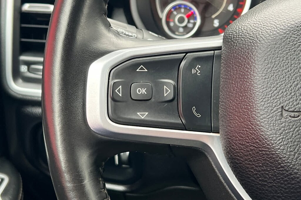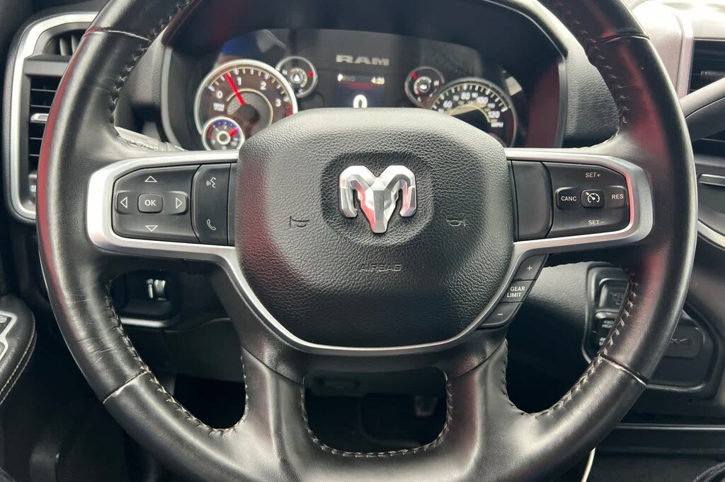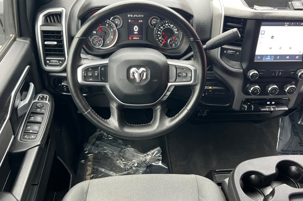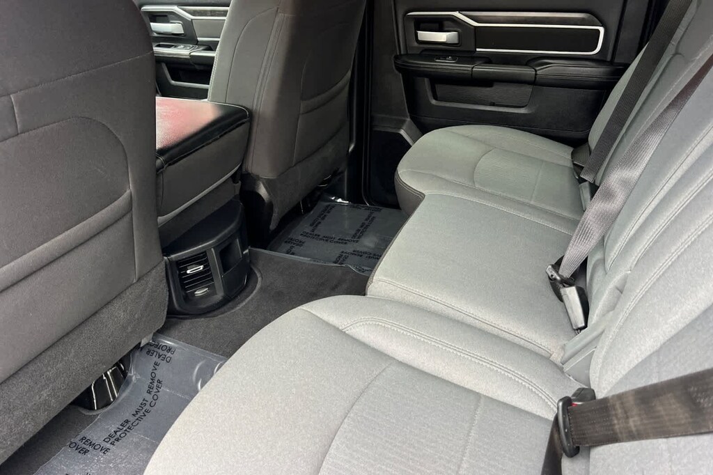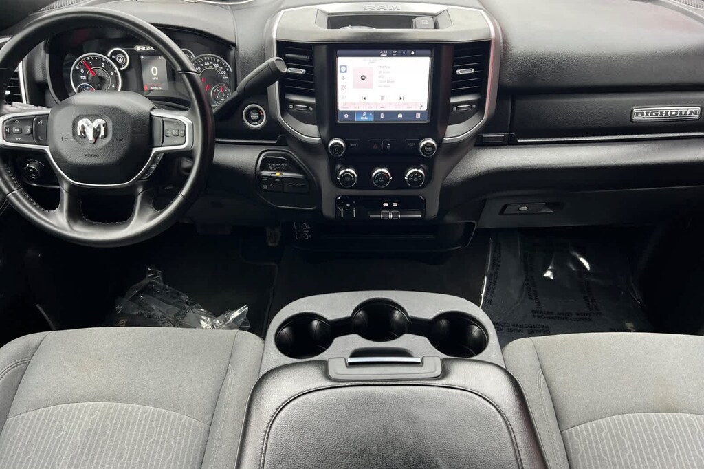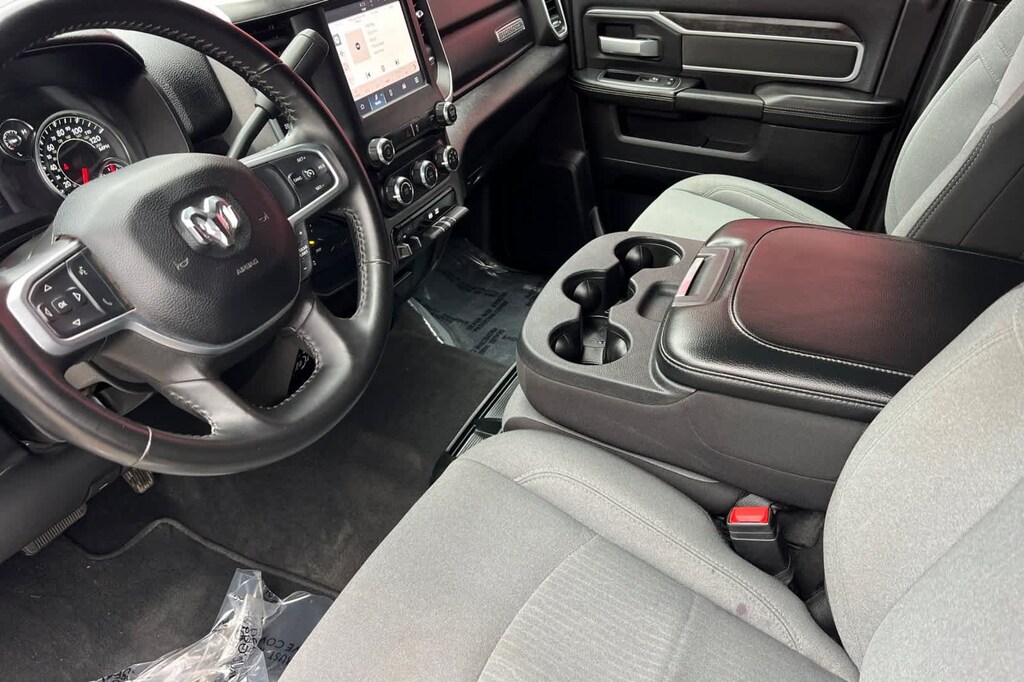 Features a, Four Wheel Drive, Big Horn trim., 2nd Row In Floor Storage Bins, Auto Power-Folding Mirrors, Black Exterior Mirrors, Center Hub, Chrome Flat Cab-Length Side Steps, Dual Glove Boxes, Exterior Mirrors Courtesy Lamps, Exterior Mirrors w/Heating Element, Exterior Mirrors w/Supplemental Signals, Foam Bottle Insert (Door Trim Panel), Footwell Courtesy Lamp, Forward & Reverse Utility Lights, Front Fog Lamps, Glove Box Lamp, Leather Wrapped Steering Wheel, Level 1 Equipment Group, Locking Lower Glove Box, Mirror Running Lights, Power Adjust Mirrors, Power Heated Fold Telescopic Mirrors, Power Telescoping Mirrors, Power-Adjustable Convex Aux Mirrors, Premium Cloth 40/20/40 Bench Seat, Quick Order Package 2HZ Big Horn, Radio: Uconnect 5 w/8.4 Display, Rear Dome w/On/Off Switch Lamp, Steering Wheel Mounted Audio Controls, Wheels: 18 x 8.0 Polished Aluminum. Cummins 6.7L I6 Turbodiesel 6-Speed Automatic 4WD