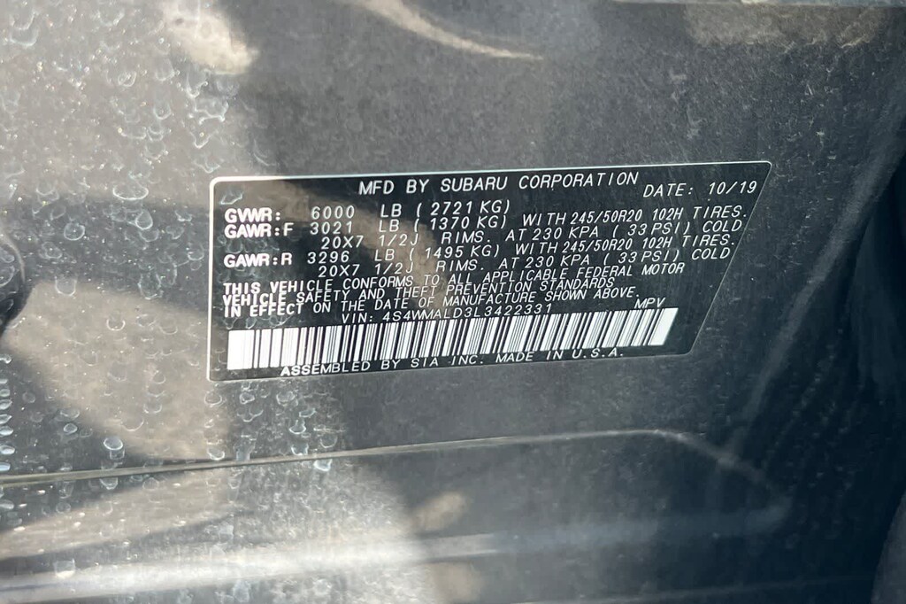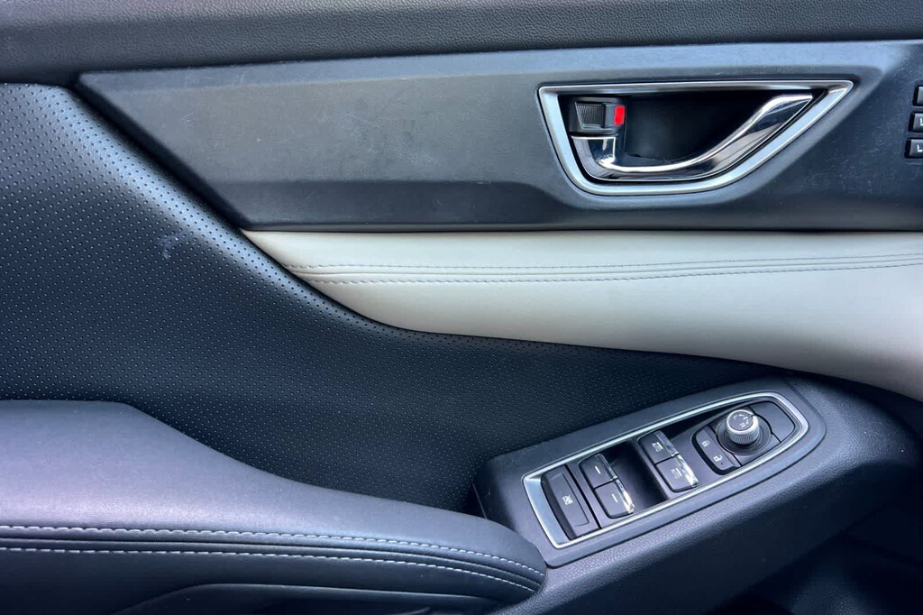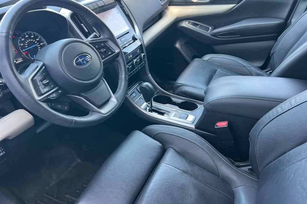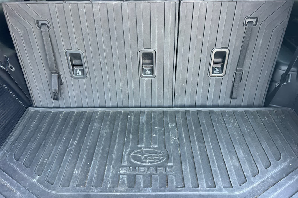Features a, All Wheel Drive, Limited trim. Back-Up Camera, Onboard Communications System, Auto-Off Headlights Rear Head Air Bag, Side Head Air Bag, All Wheel Drive, Aluminum Wheels, Privacy Glass, Remote Trunk Release, Child Safety Locks., Aero Crossbar Set, All-Weather Floor Liners, Auto-Dimming Exterior Mirror w/Approach Light, Cargo Area Cover, Cargo Tray, Dual Glass Panoramic Power Moonroof, Magnetite Gray Metallic Body Side Molding (DIO), Popular Package #3, Radio: Subaru STARLINK 8.0 Multimedia Nav System, Rear Bumper Cover, Rear Seatback Protector, Splash Guards, Technology Package. 2.4L DOHC Lineartronic CVT AWD