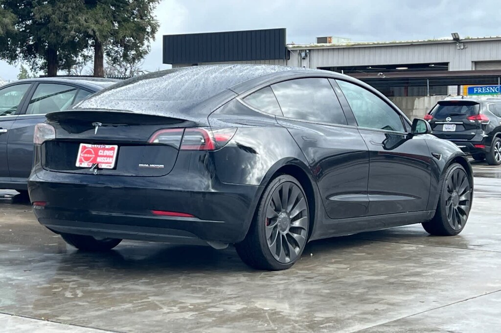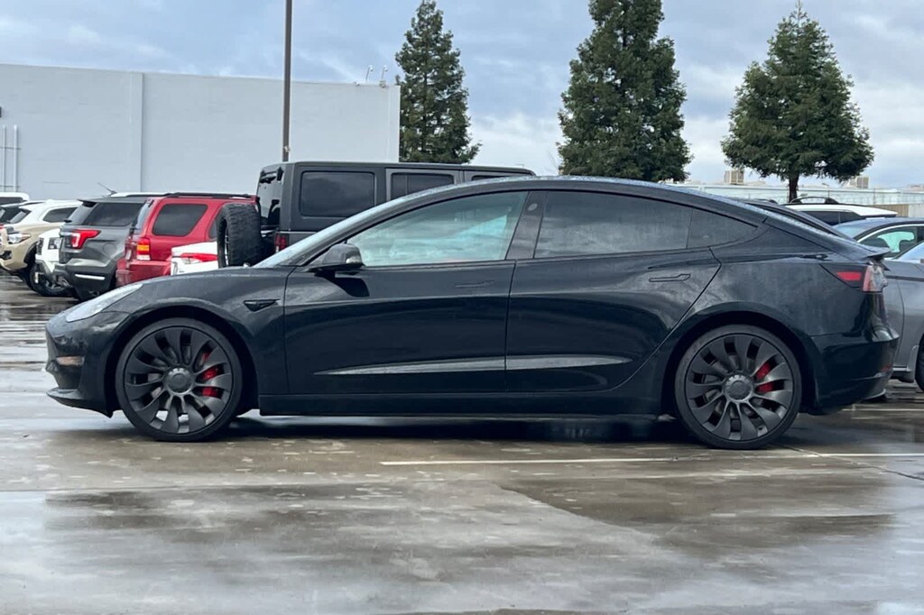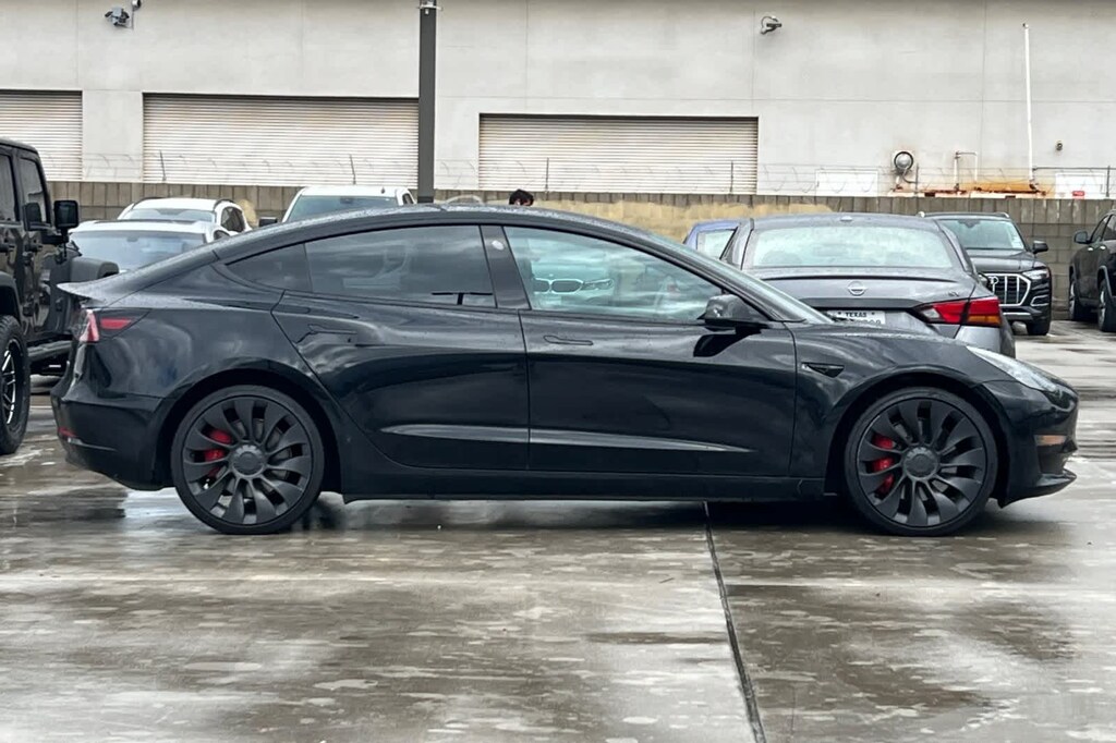 This Model 3 Performance is finished in the Solid Black exterior paint and Black Premium Seat Trim interior.