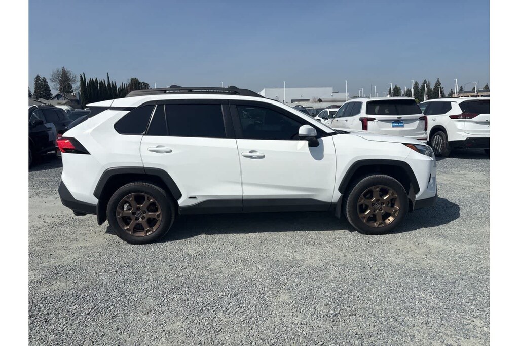 This RAV4 Hybrid Woodland Edition is finished in the White exterior paint and Blk/Black Cloth interior.