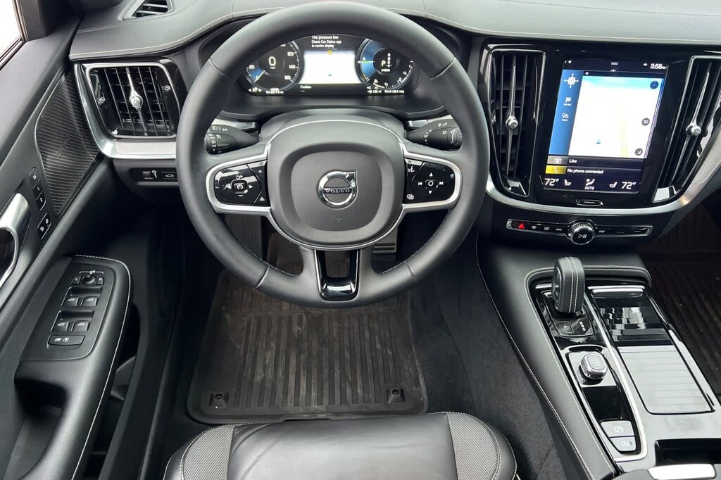 This S60 Recharge Plug-In Hybrid T8 Black Edition R-Design Extended Range is finished in the Onyx Black Metallic exterior paint and Charcoal Cloth interior.
