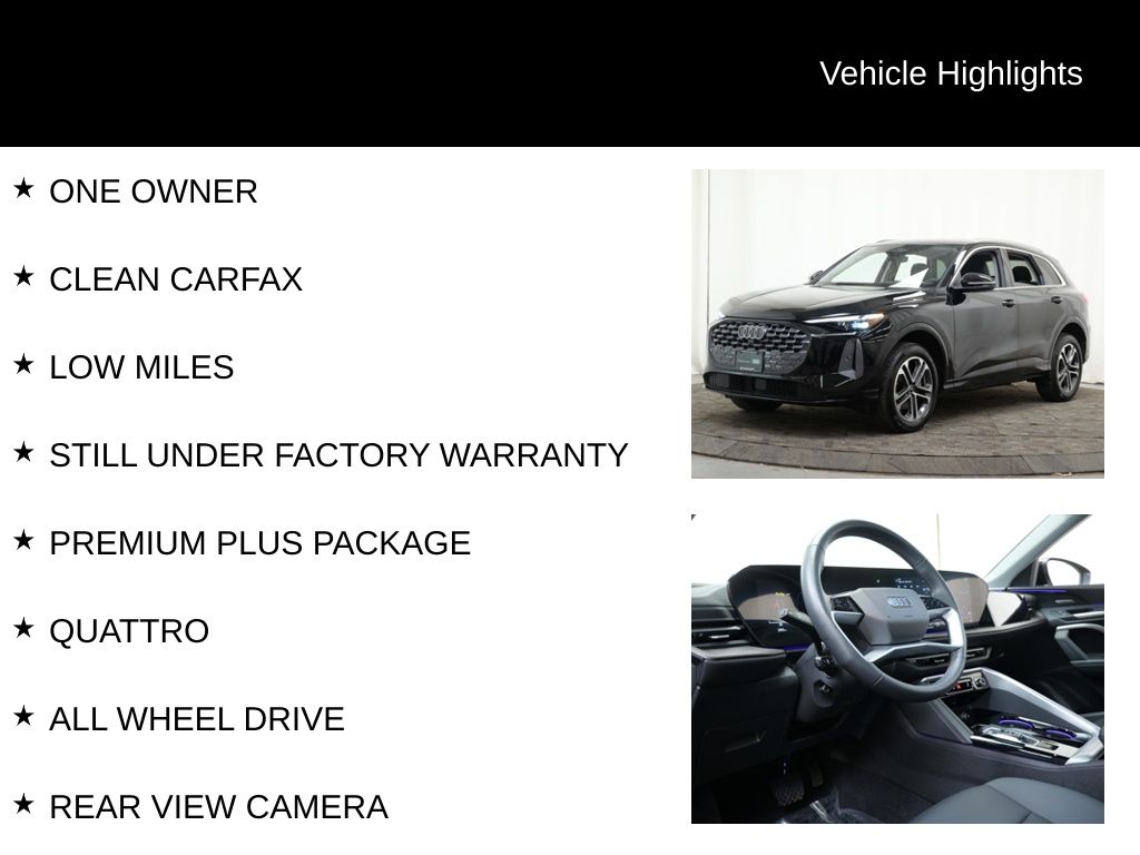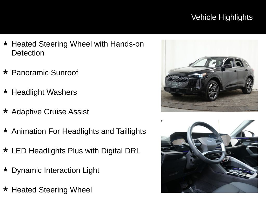 I’ve driven Audis for most of my life—including an A4, A3, Q3, two Q5s, a Q6 e-tron, and now the new Q5—and I have to say this one is definitely a favorite. It’s packed with new technology and features, and it looks great on the road. It handles incredibly well in the snow, has plenty of power for quick acceleration, grips the road confidently, and always makes me feel safe. I almost went with a BMW, but I’m really glad I stuck with Audi. Highly recommend! - 5.0