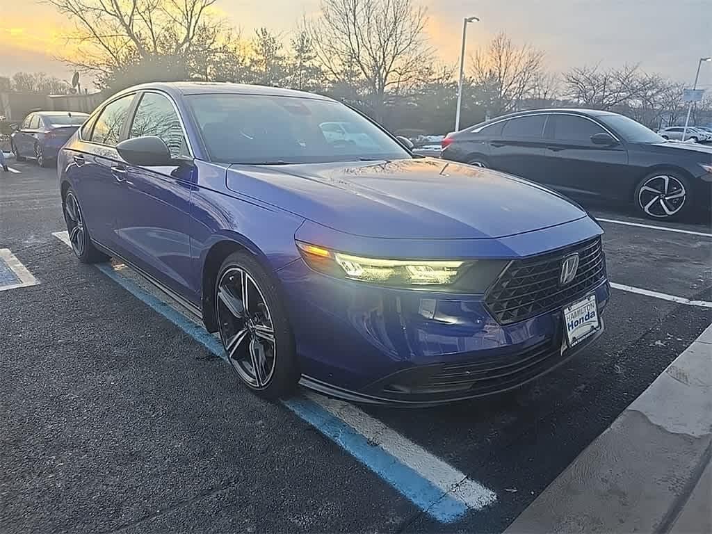 Certified. Hamilton Honda is proud to offer this charming-looking 2024 Honda Accord Hybrid in Blue. This vehicle comes with the following features; Price does not include licensing costs, registration fees, taxes and dealer doc fee of $999 which are to be paid by the consumer. ***Power Sunroof/Moonroof***, ***Rear Back Up Camera***, ***Honda Certified***, *** One Owner***, ***Low Mileage***, Android Auto + Apple Carplay, *** Lifetime Car Washes***, Accord Hybrid Sport, 4D Sedan, 2.0L 16V DOHC, eCVT, FWD, Blue, Blk Cloth.